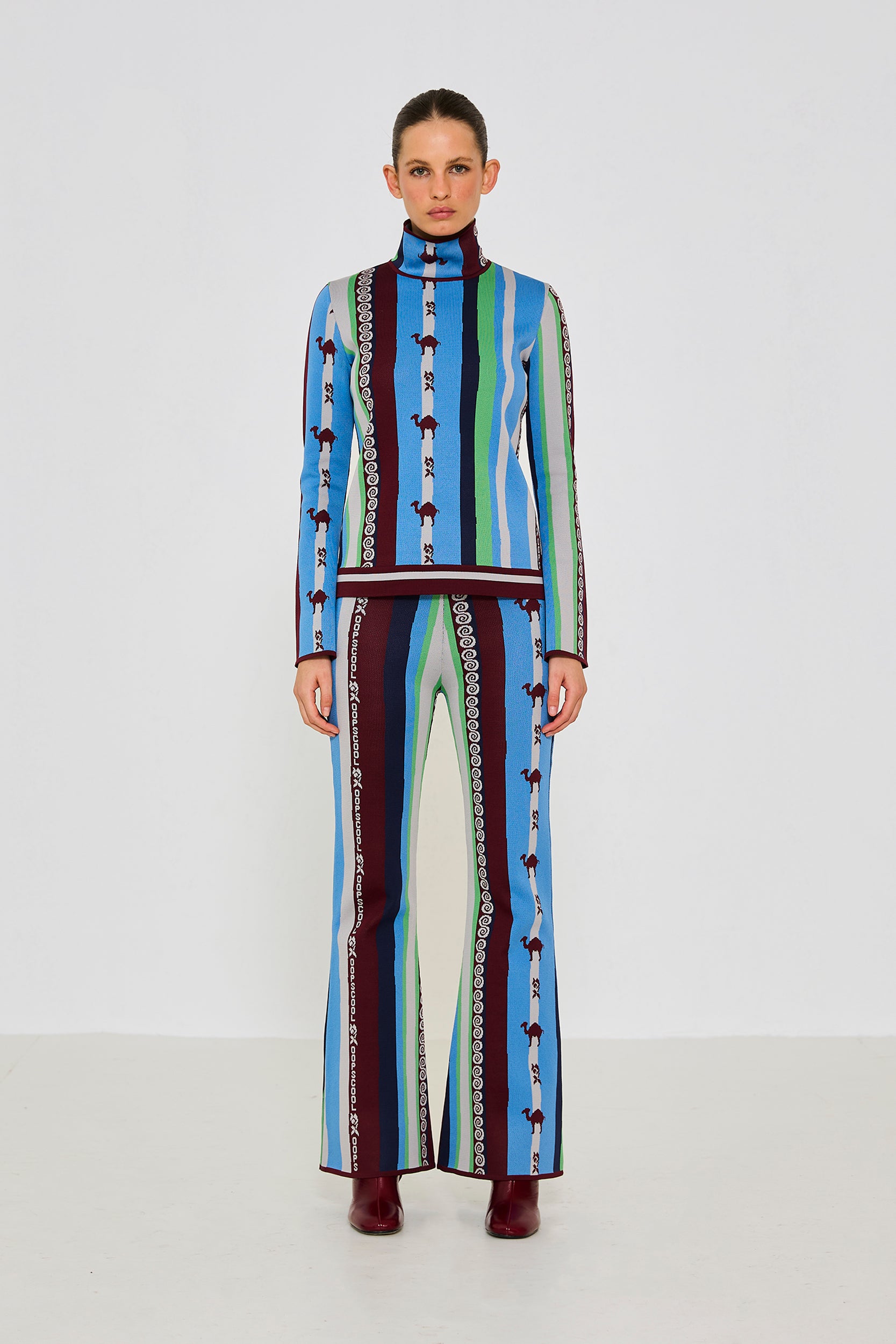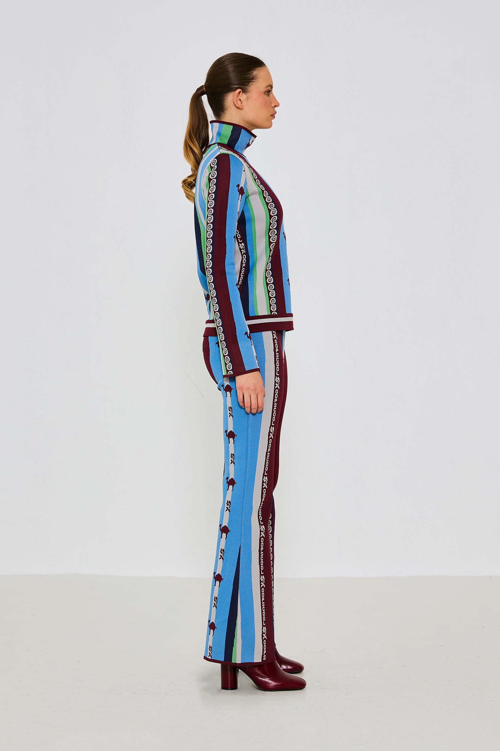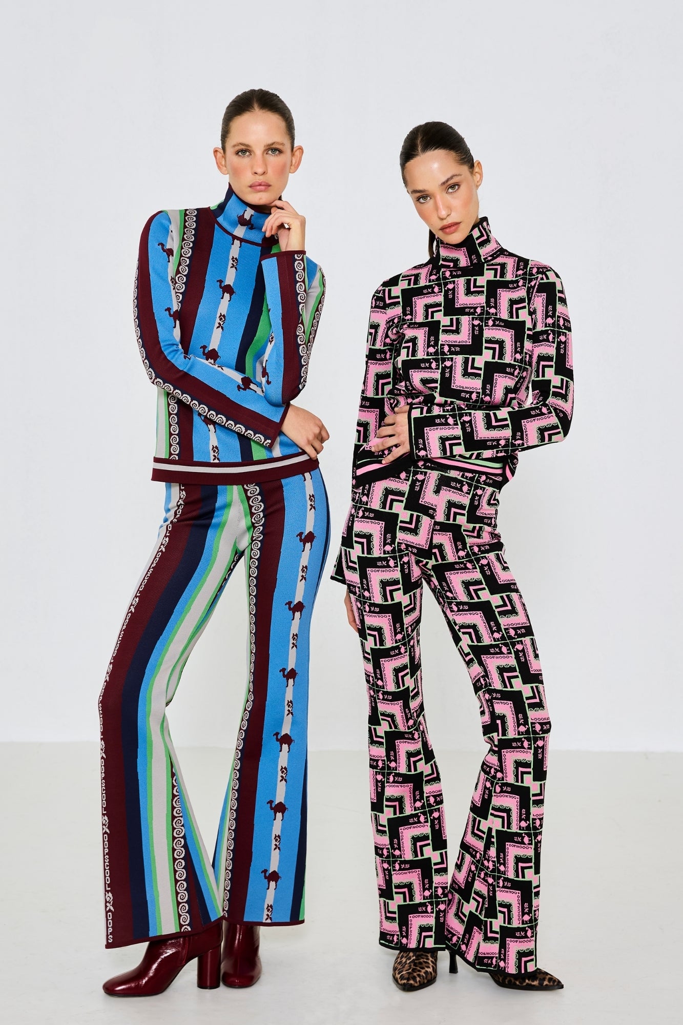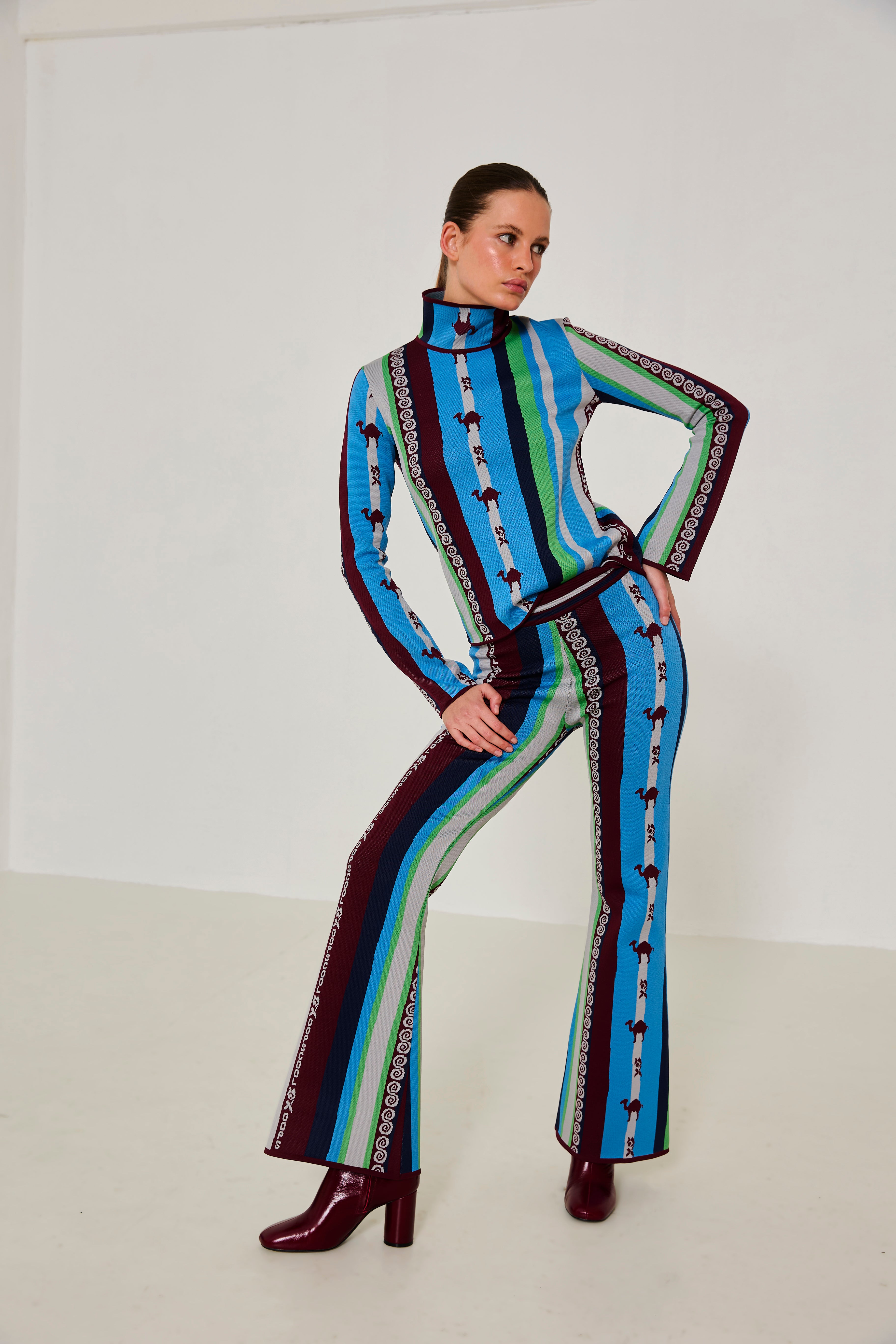 %100 Pes ,yüksek belli, flare leg triko pantolon. Modelin üzerindeki S bedendir.
