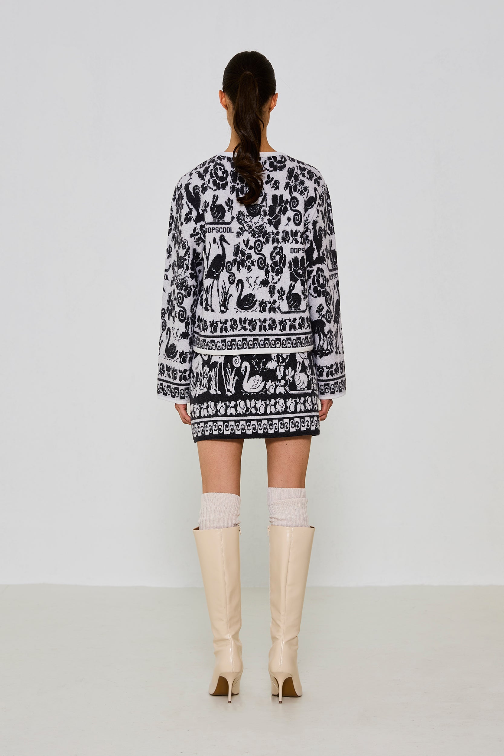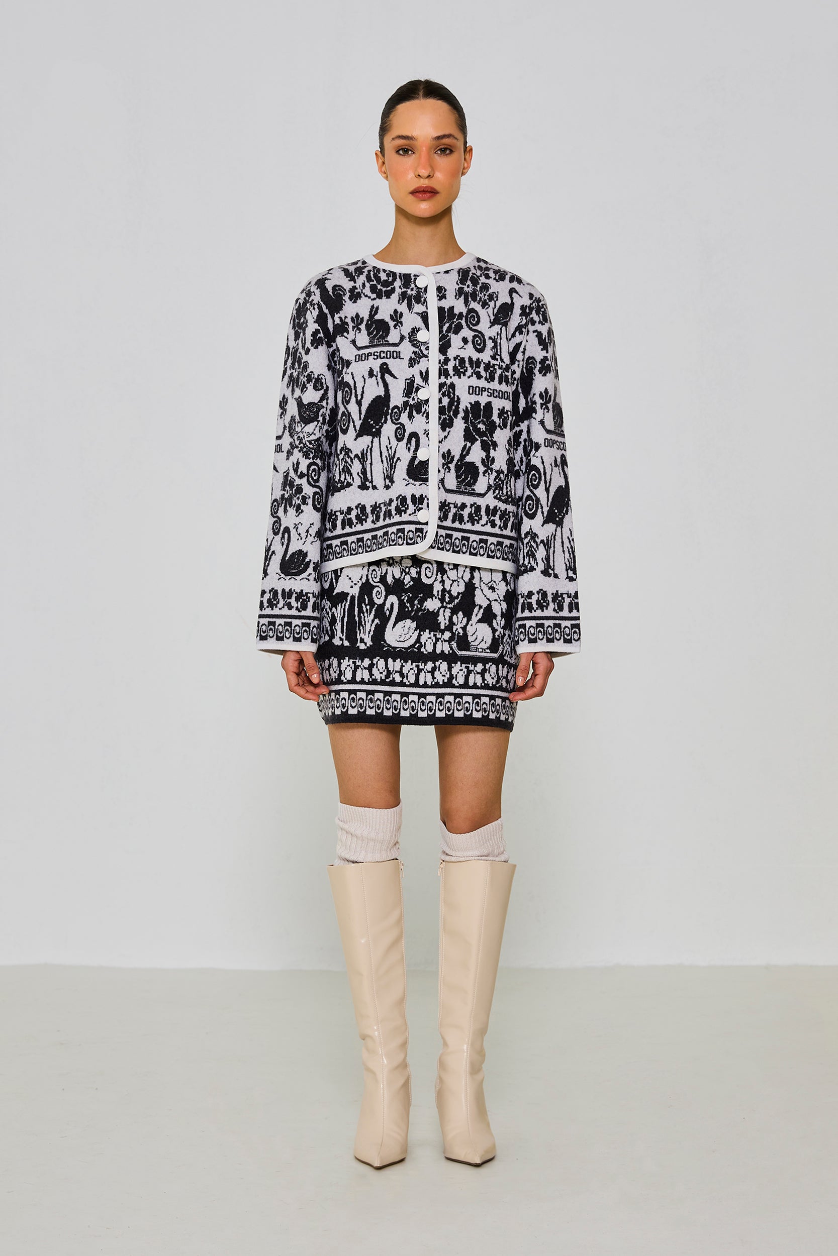 %75 Yün, %25 Akrilik içerikli, mini triko etek. Modelin üzerindeki S bedendir.