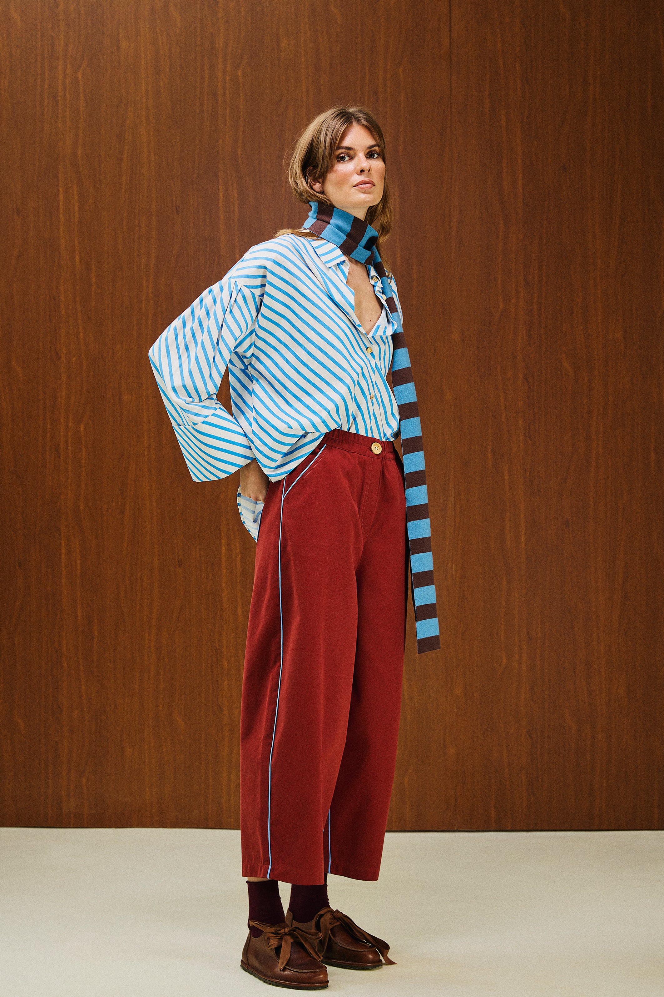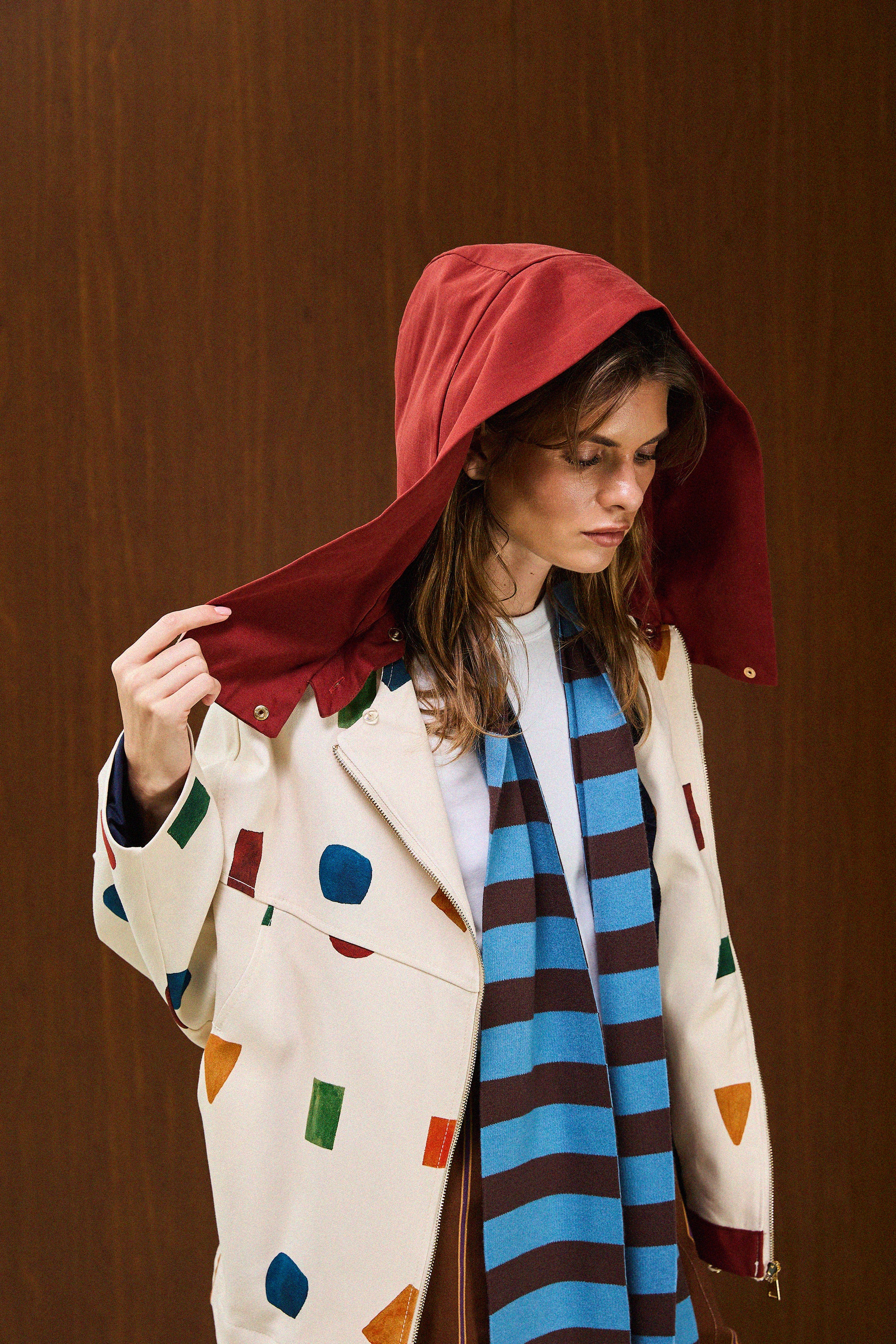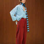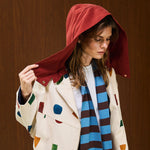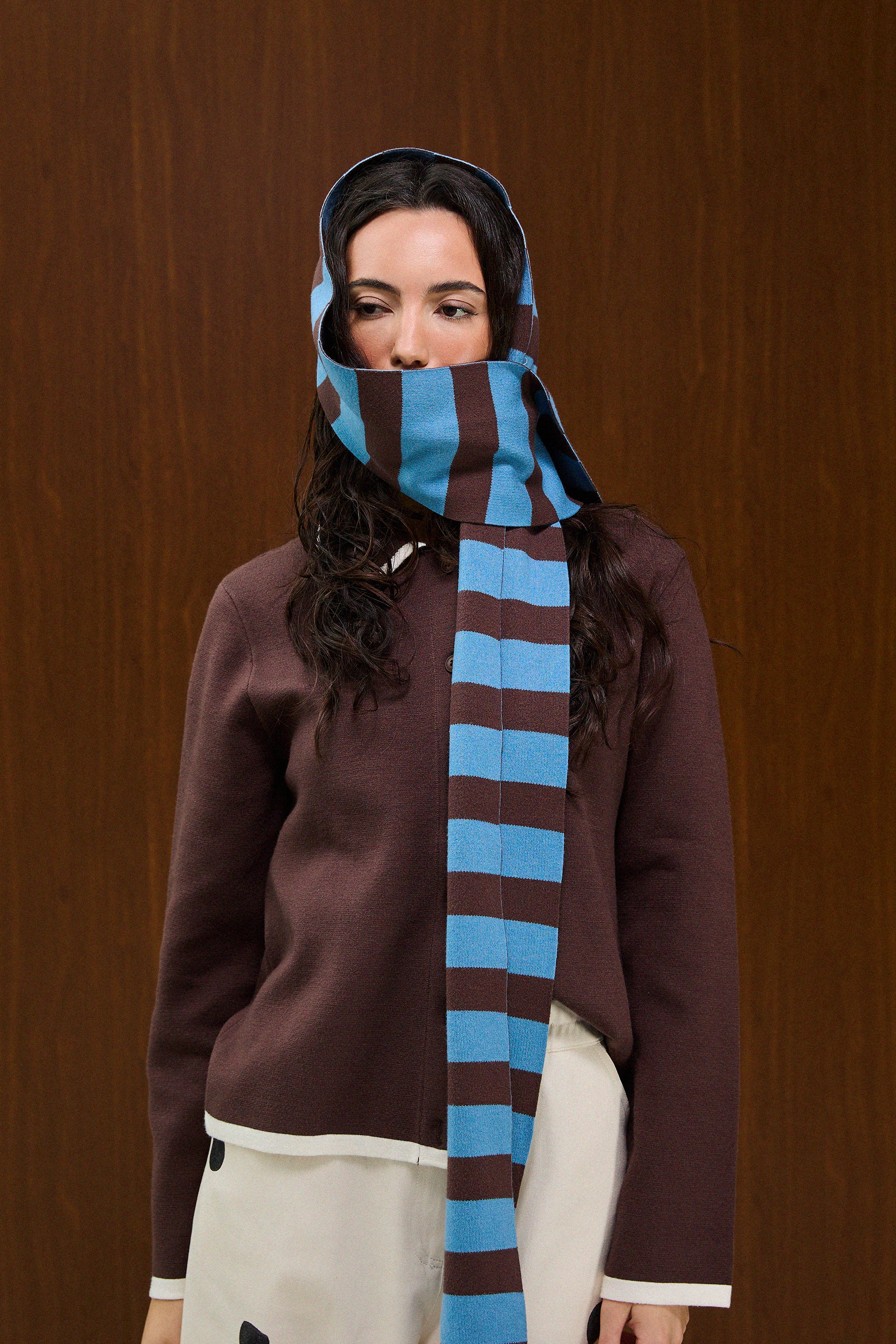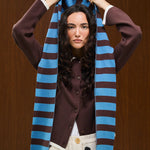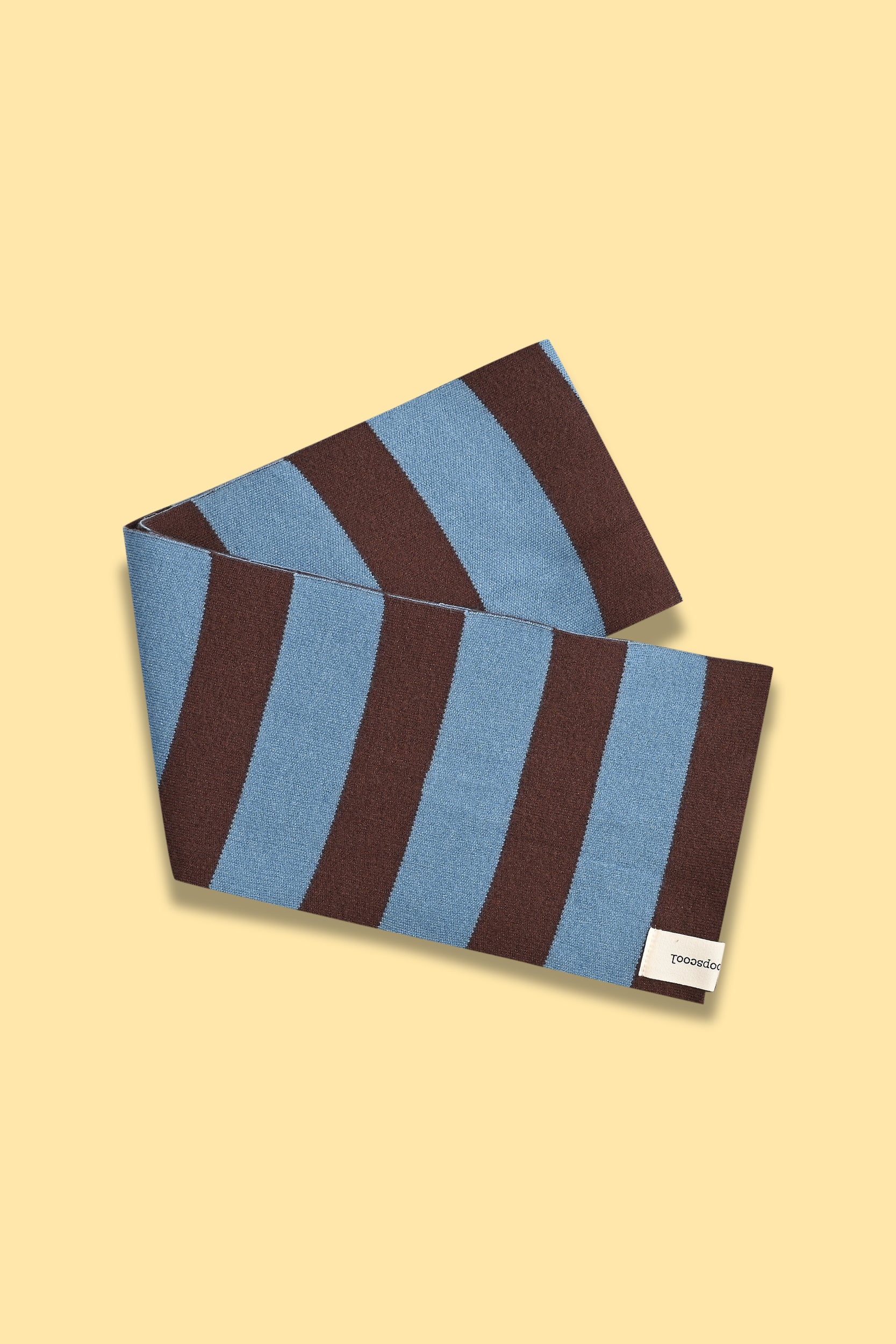 A knitted scarf featuring  stripes.Crafted in a soft, cozy texture with a straight rectangular cut and clean edges.