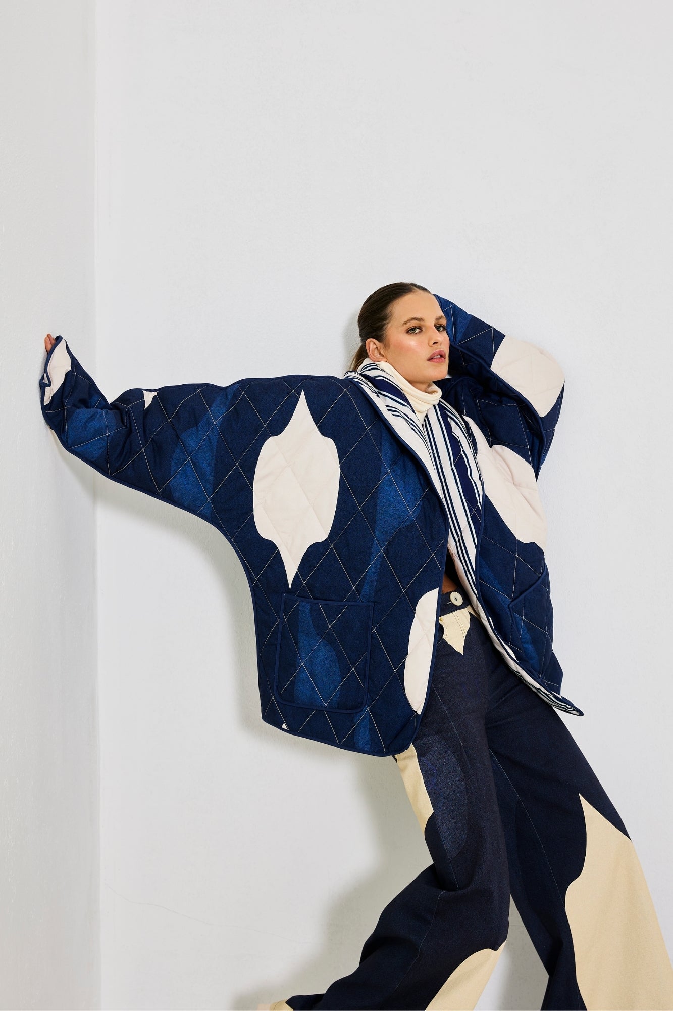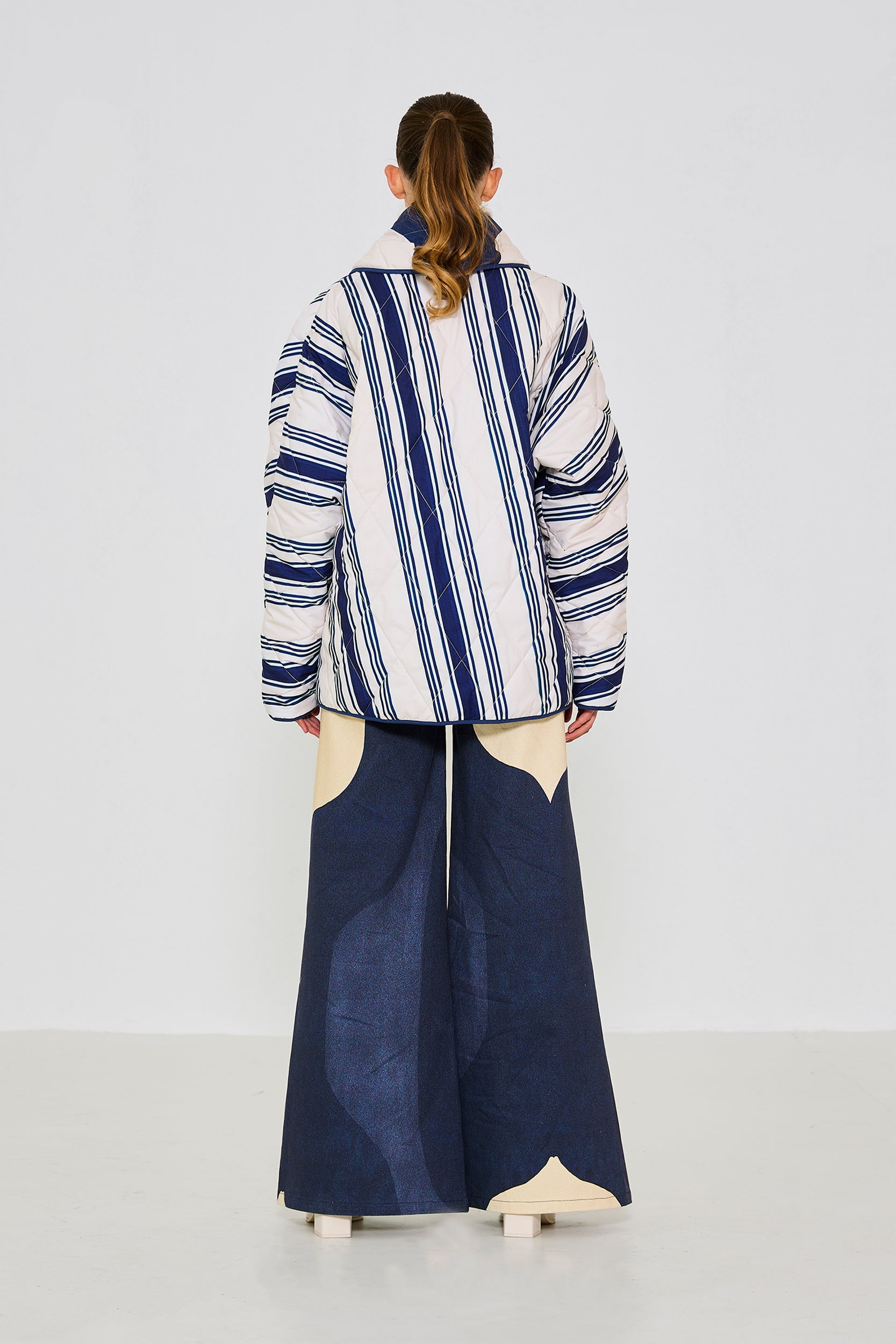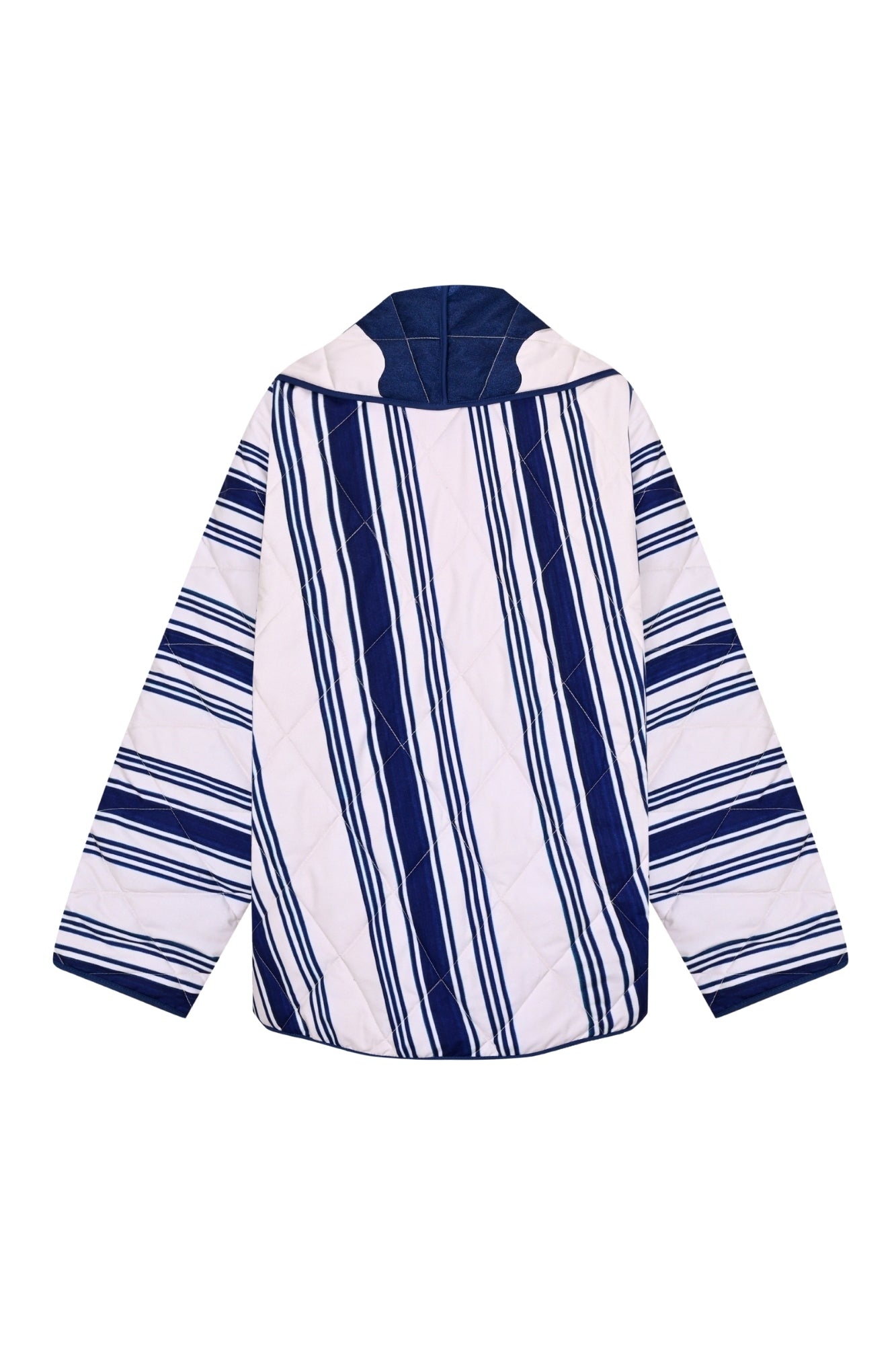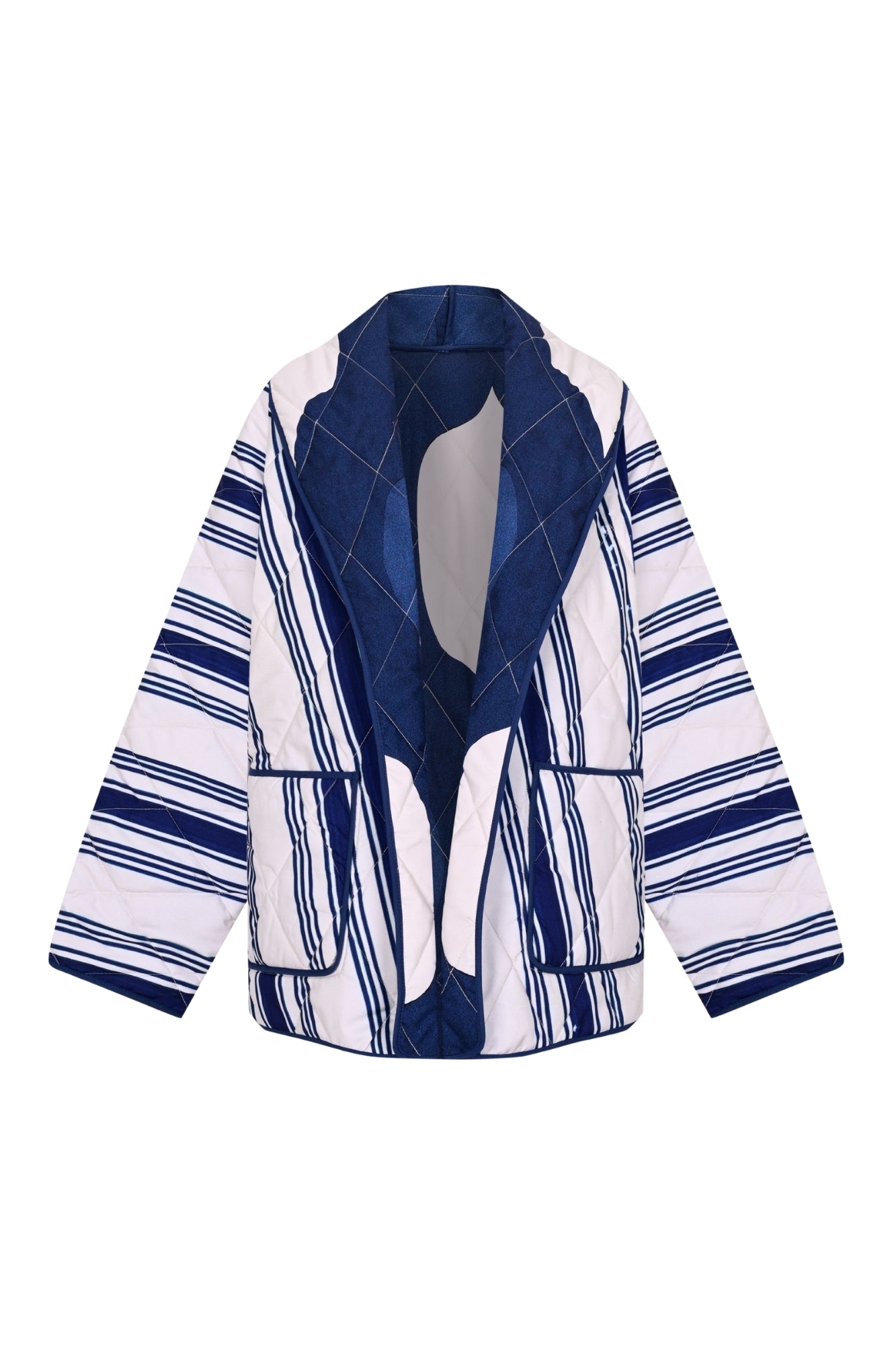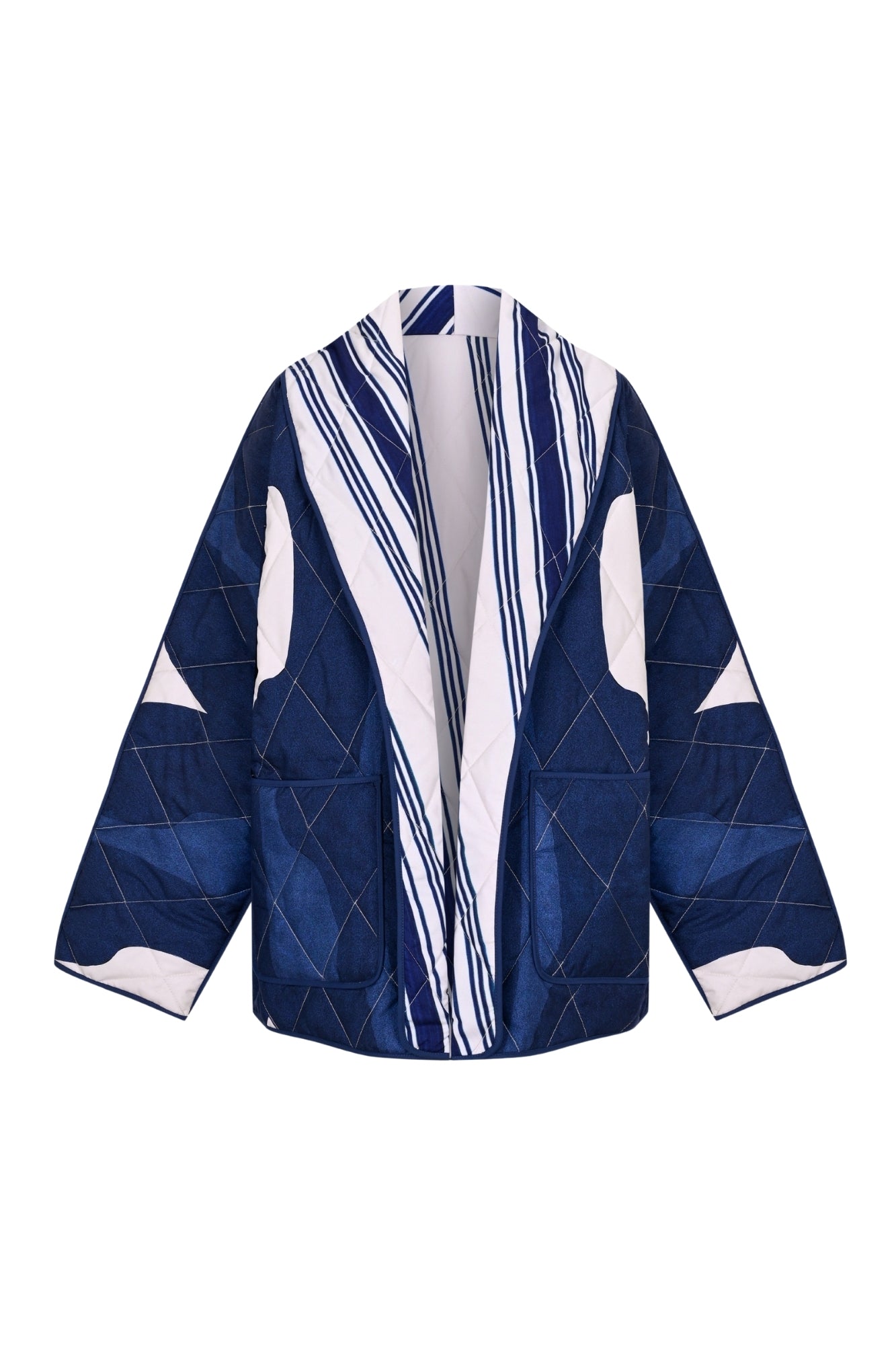 Çift taraflı giyilebilen, iki yüzünde de cepleri olan ,şal yaka ,biye detaylı puffer ceket.