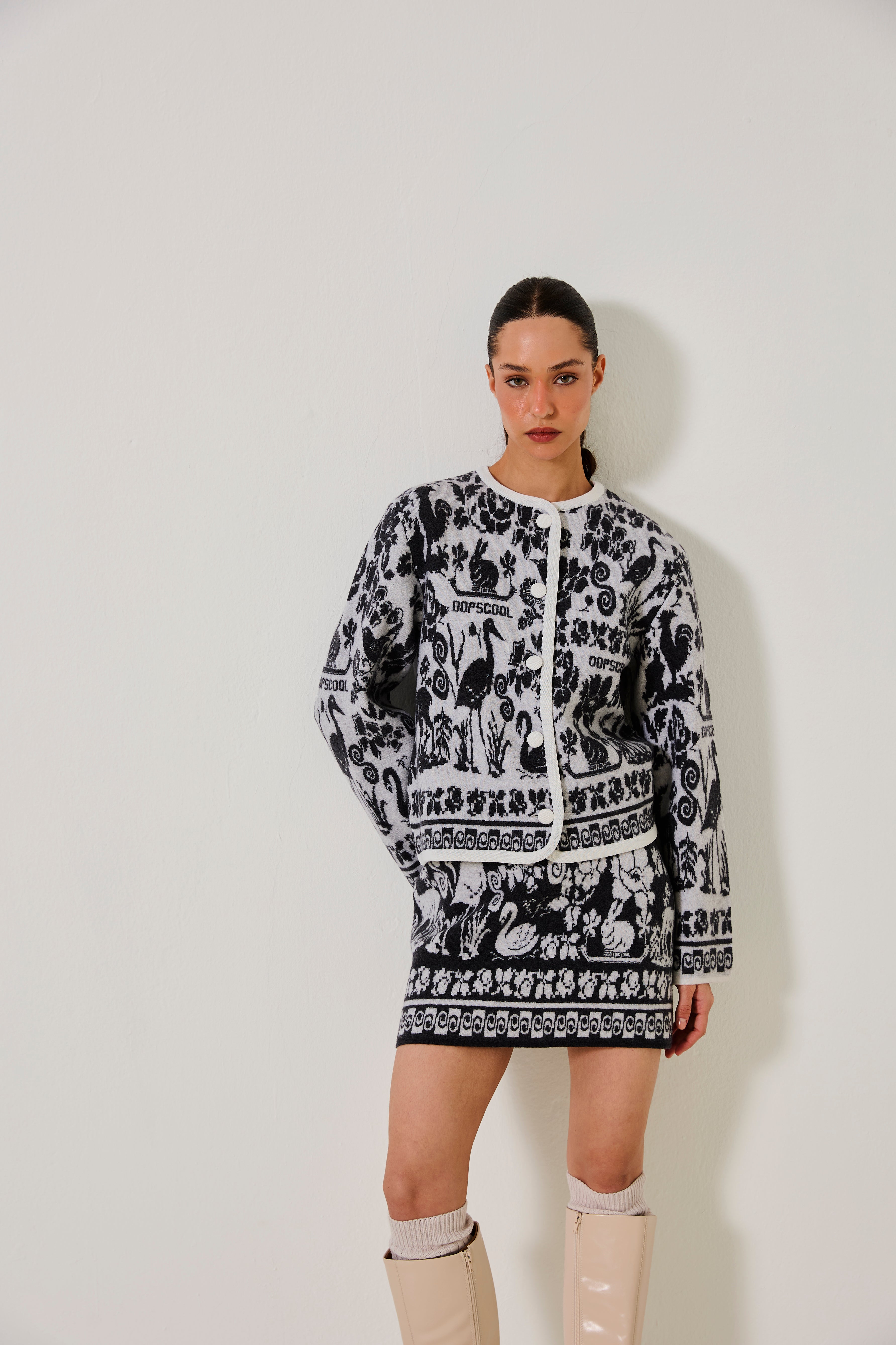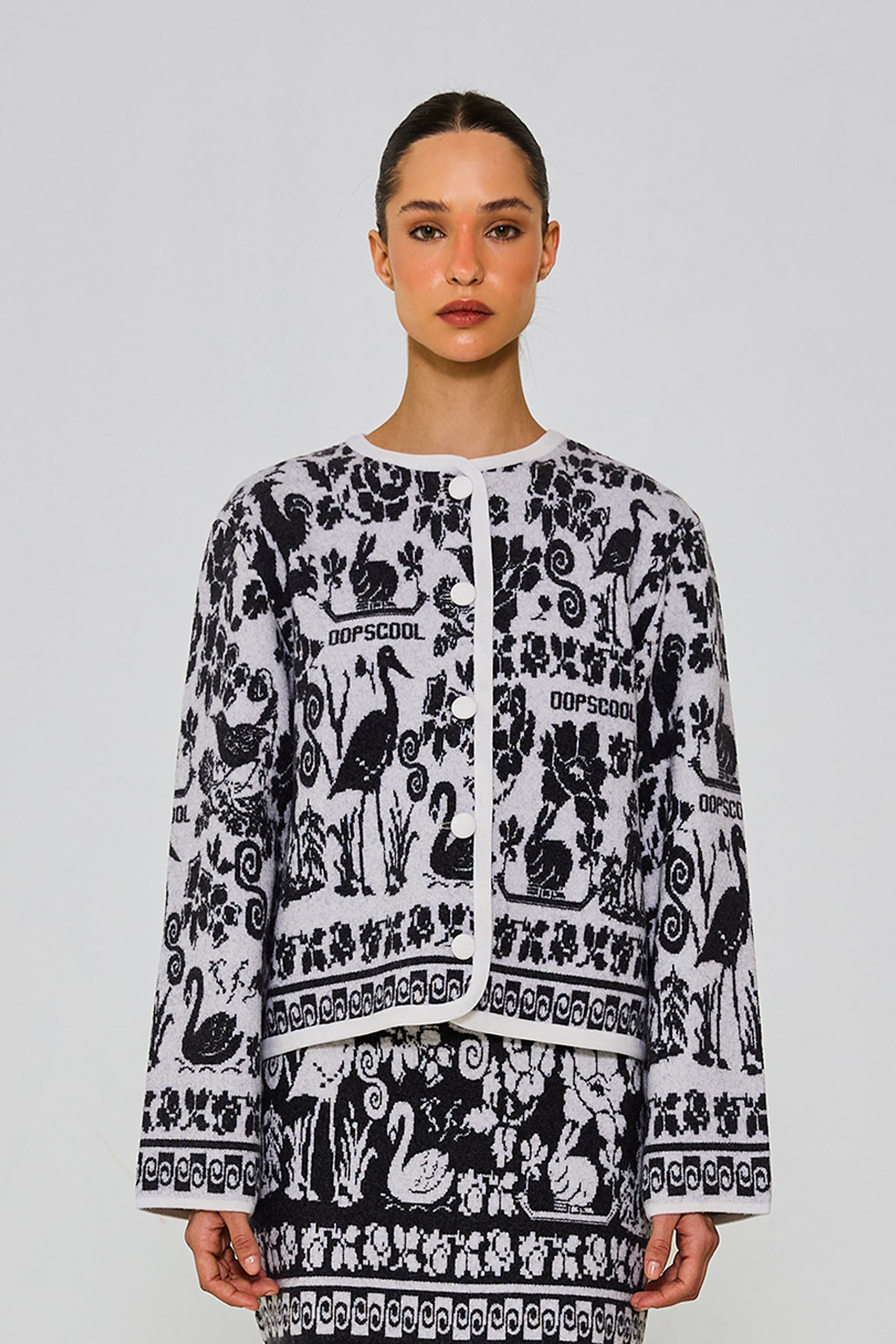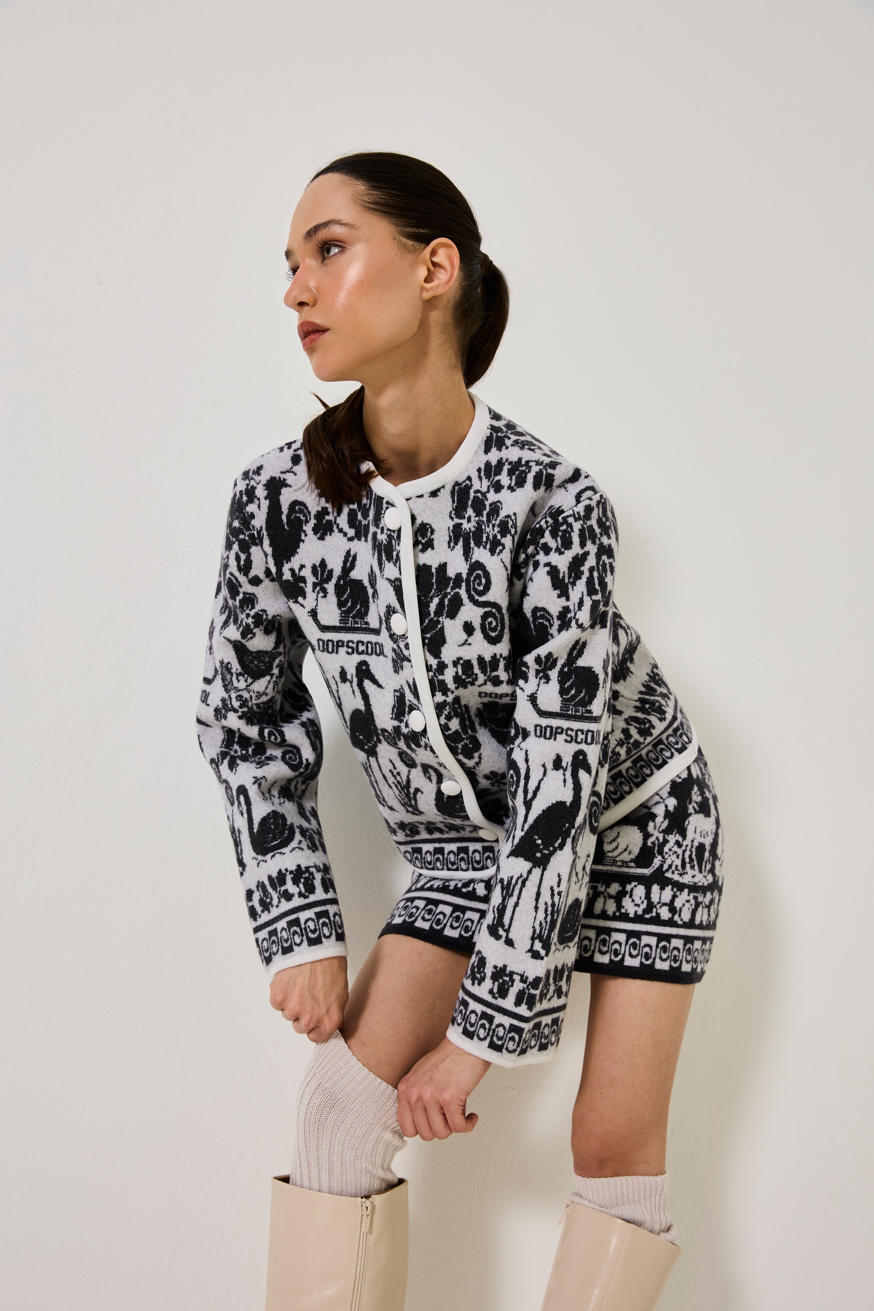 %75 Yün, %25 Akrilik içerikli, düğmeli triko ceket. Modelin üzerindeki S bedendir.