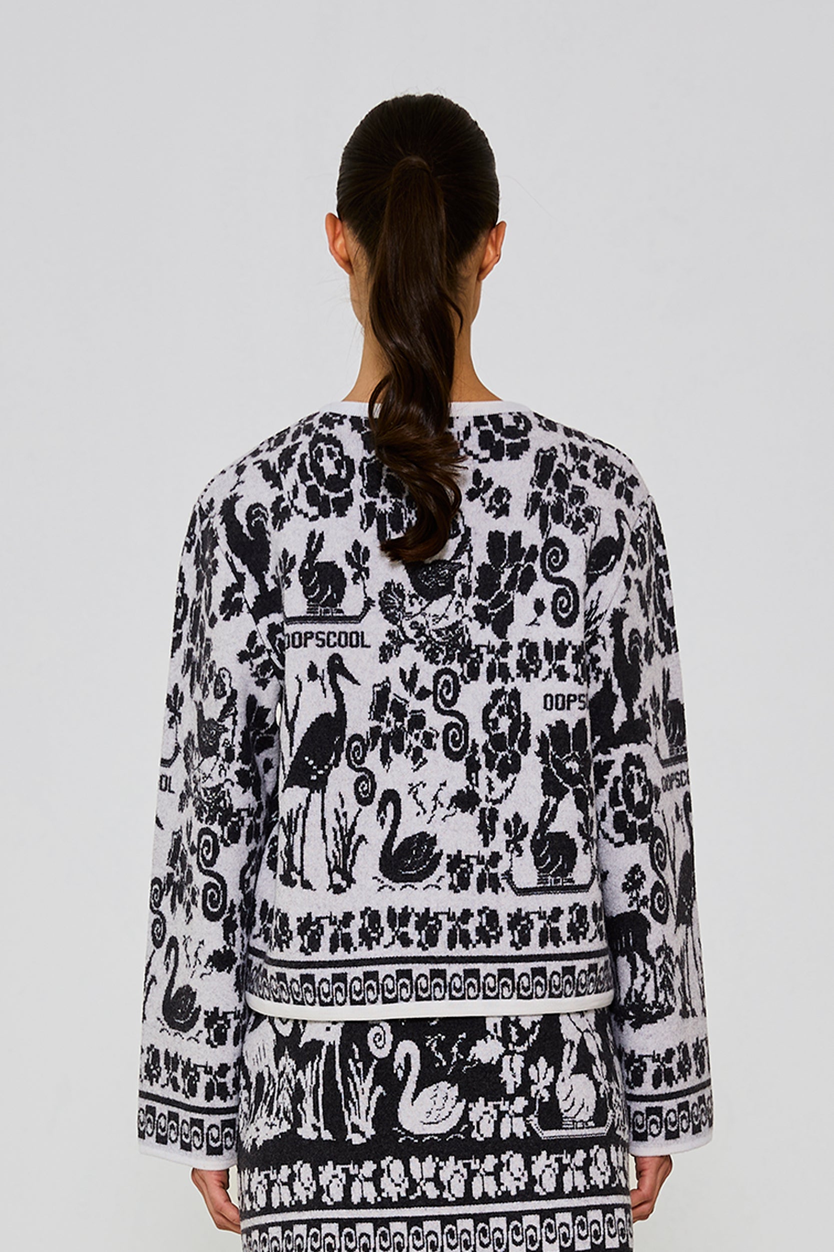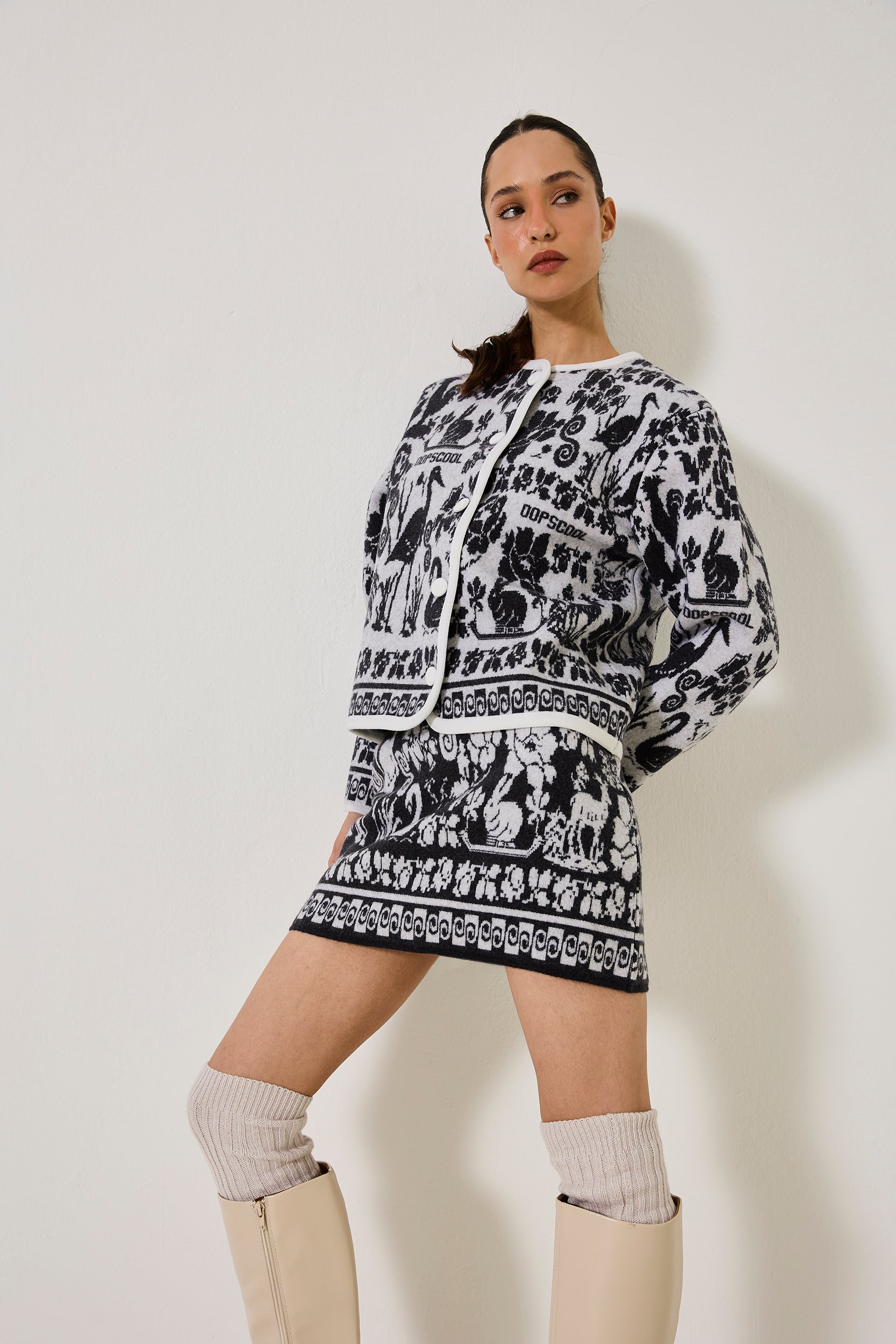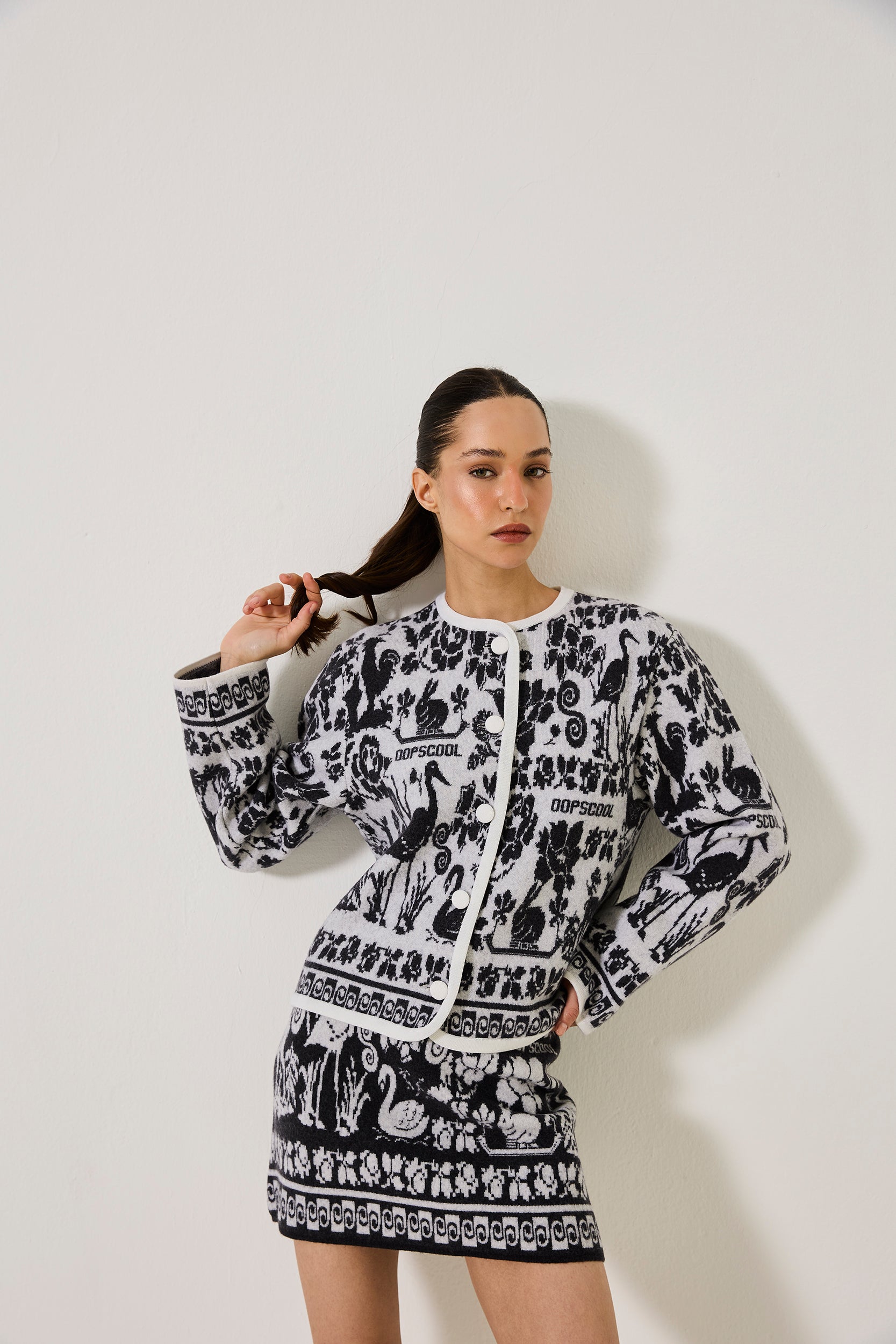 %75 Yün, %25 Akrilik içerikli, düğmeli triko ceket. Modelin üzerindeki S bedendir.