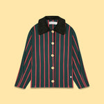 Wıde-cut short jacket wıth a detachable velvet collar and buttoned pleat detaıl on the front.