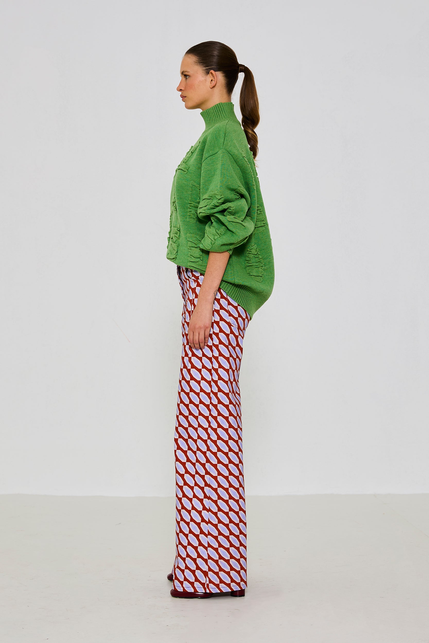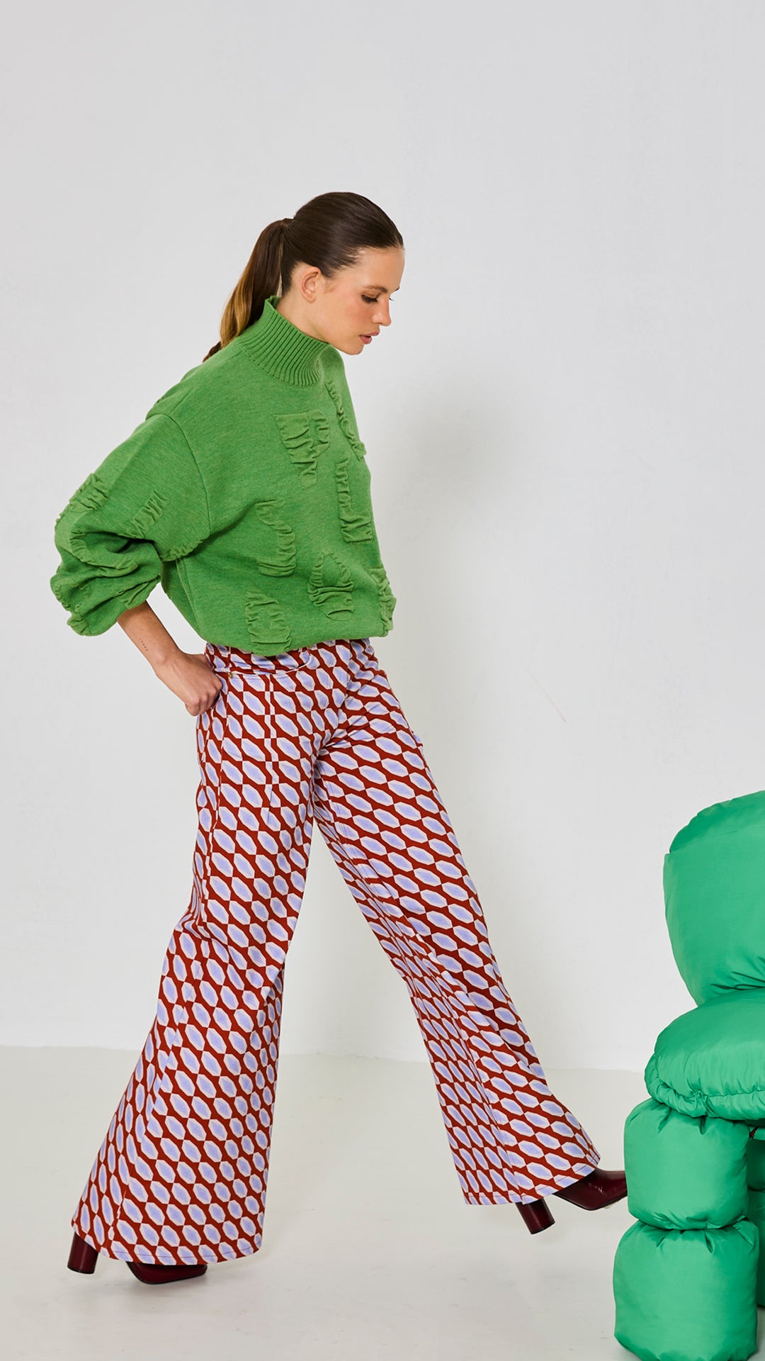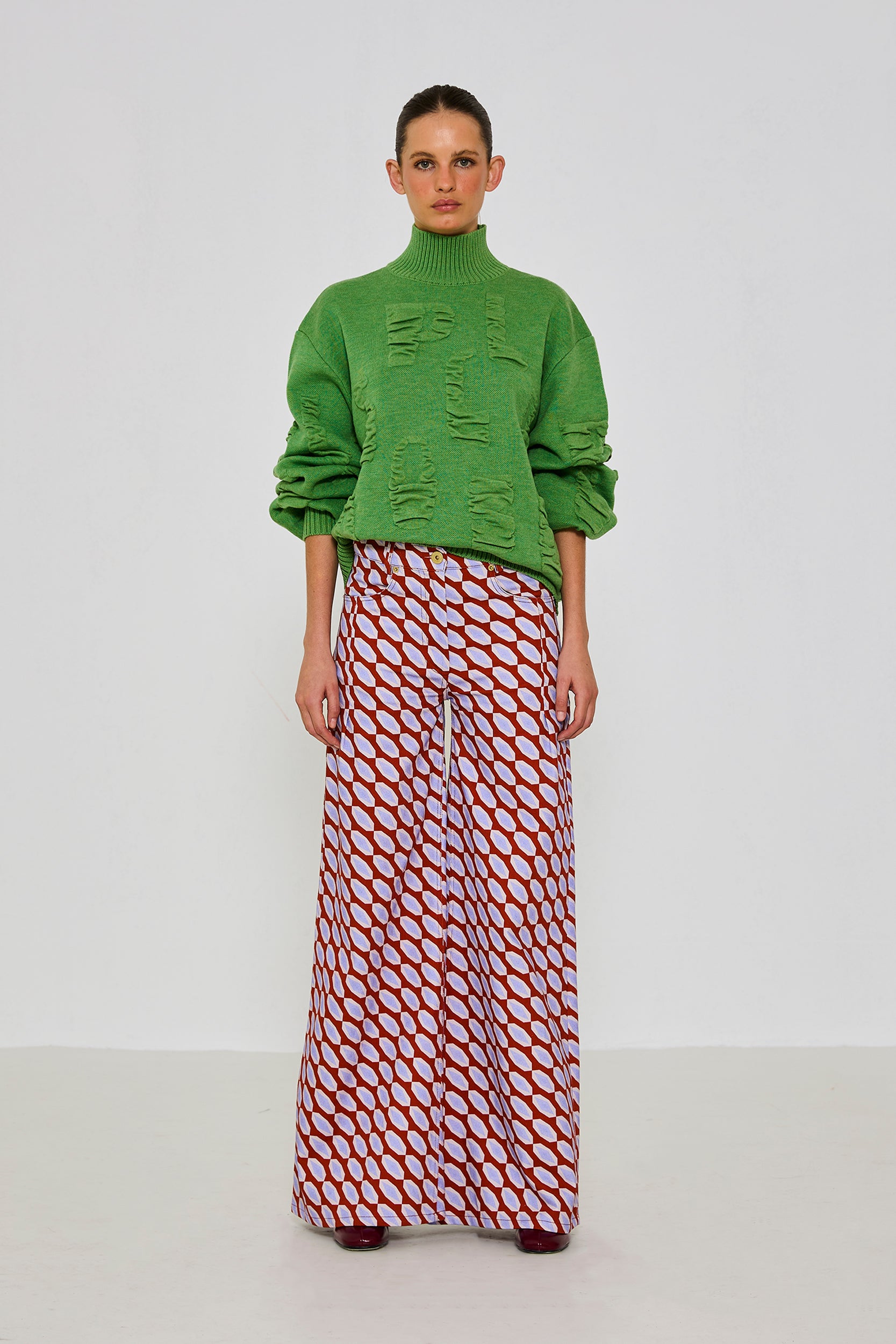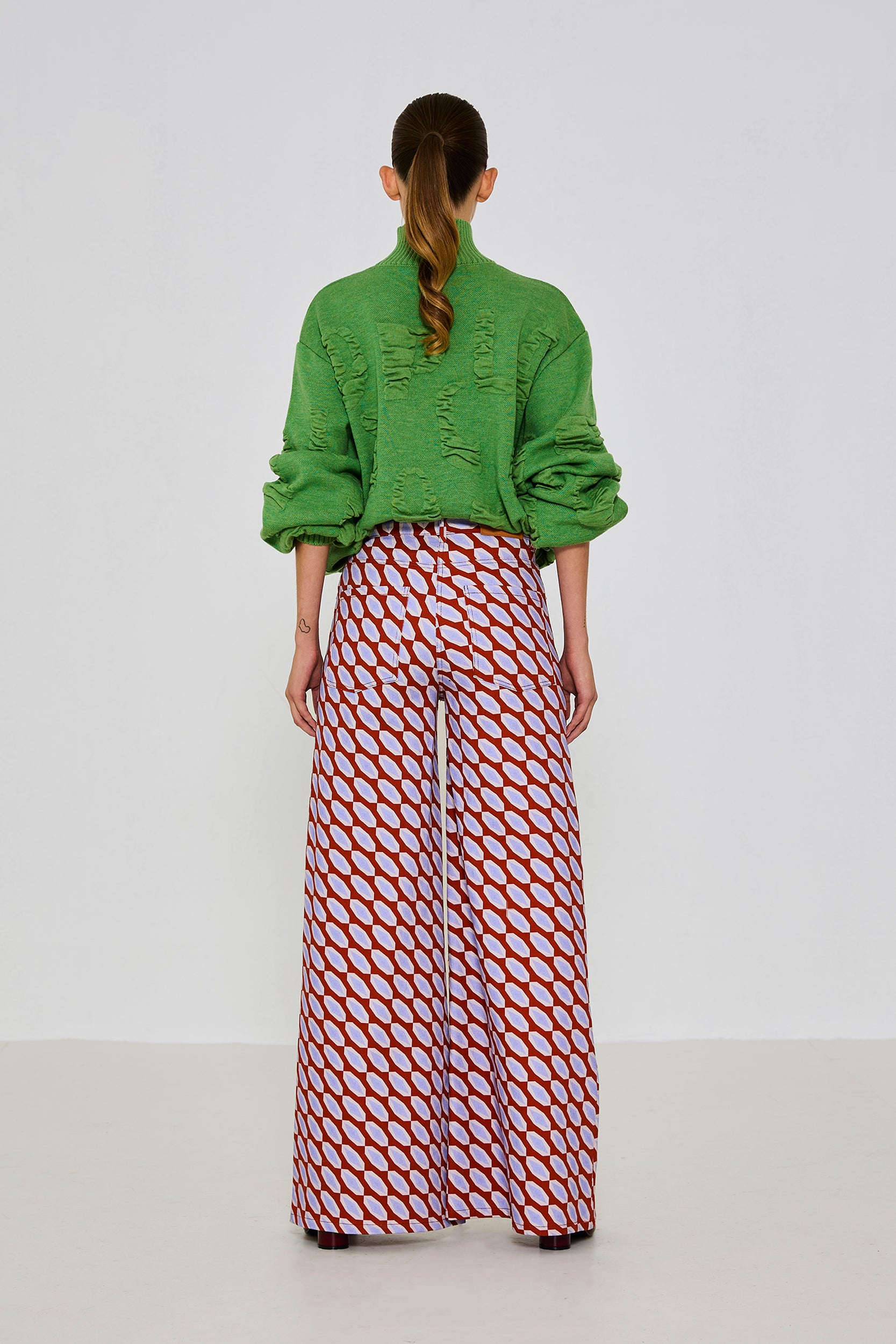 %97 Pamuk %3 Elastan, bol paça, kalın kumaş gabardin pantolon. Modelin üzerindeki S bedendir.