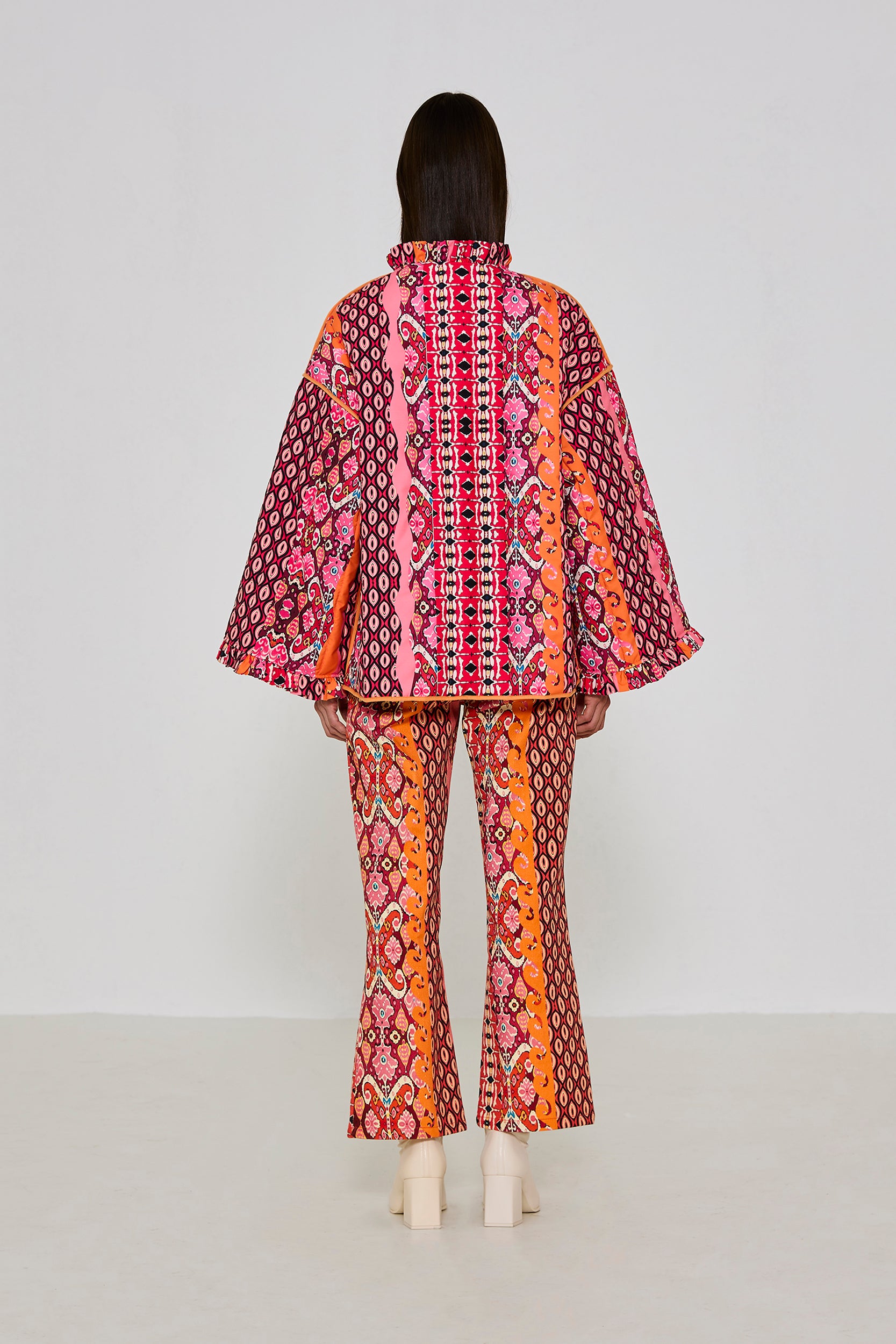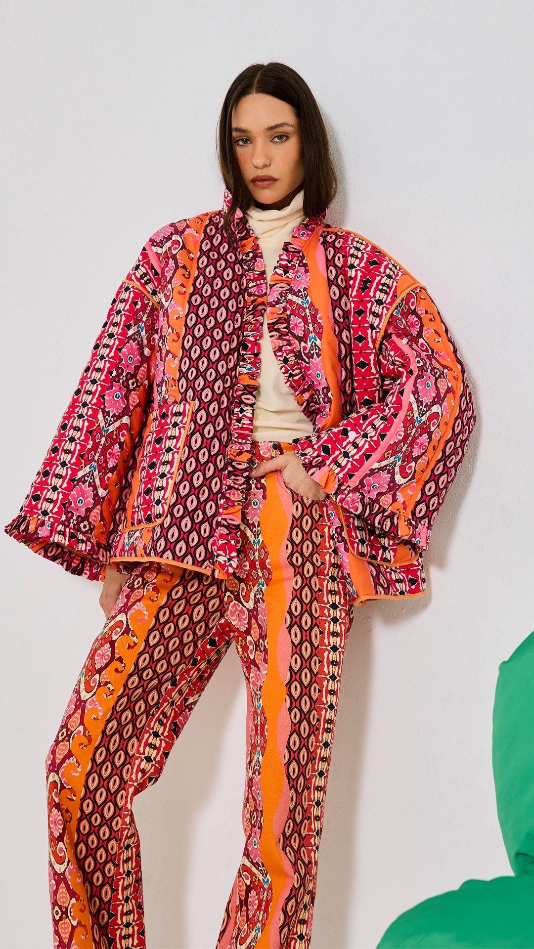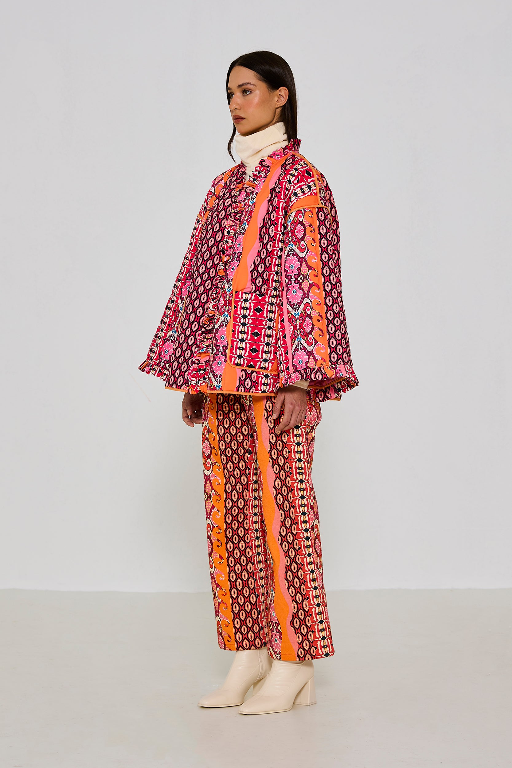 %100 Pamuk ,düz paça ,kalın kumaş gabardin pantolon. Modelin üzerindeki S bedendir.