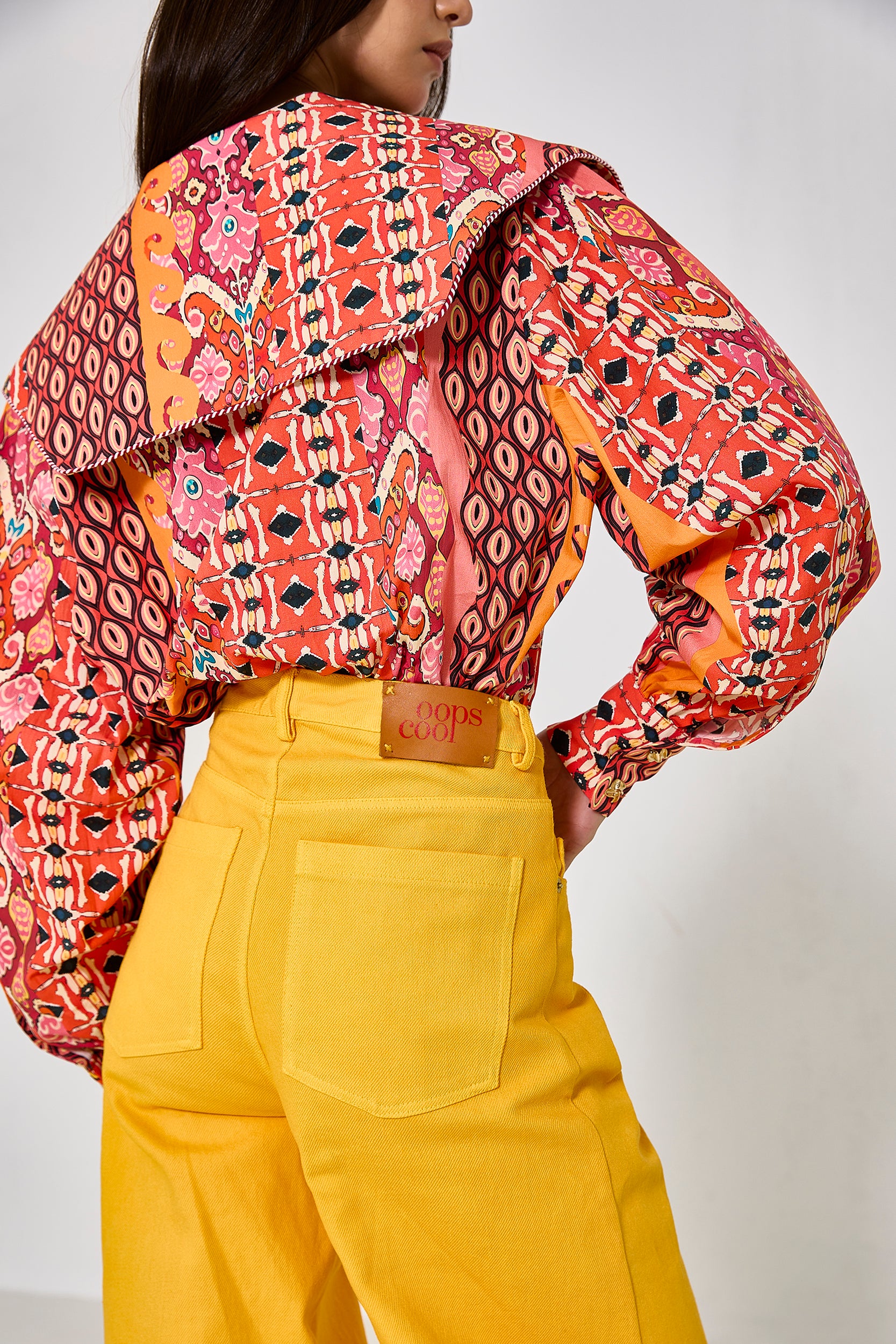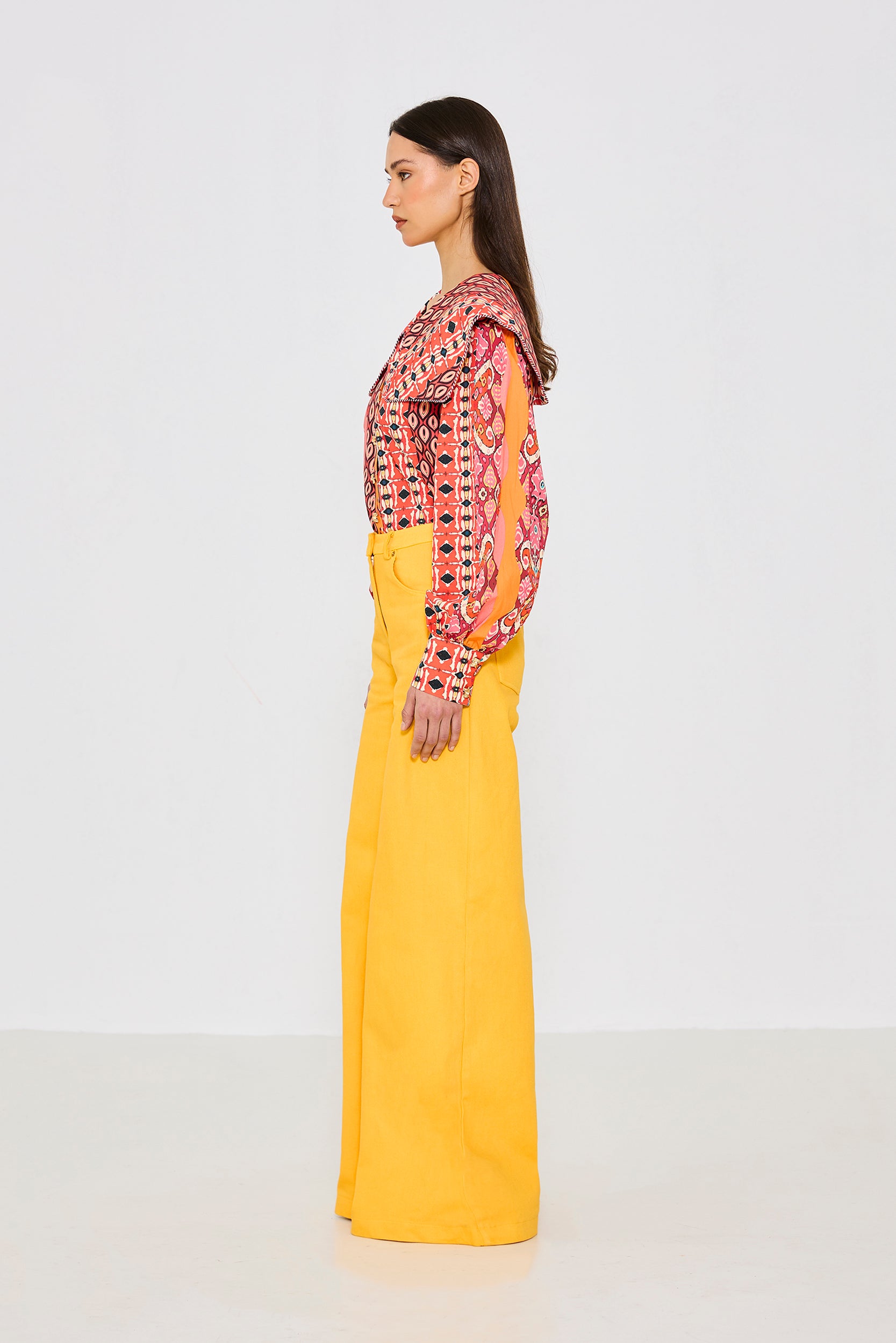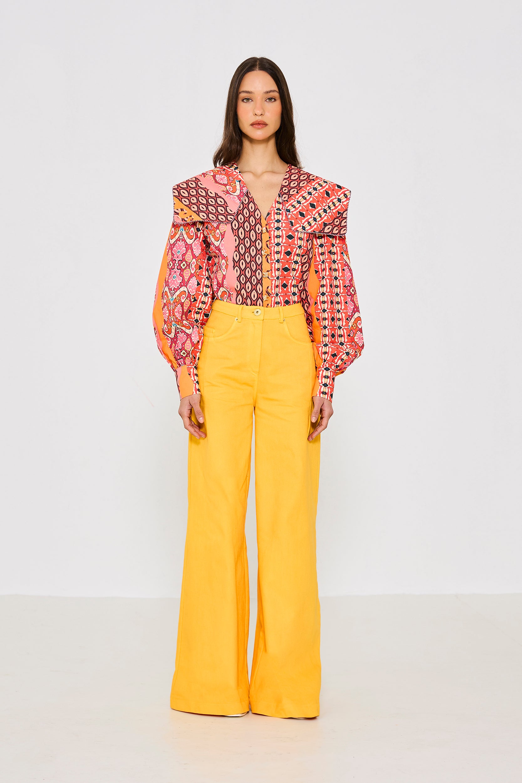 %100 Pamuk, denizci yakalı, biye detaylı, bol kesim gömlek. Modelin üzerindeki 1 bedendir.