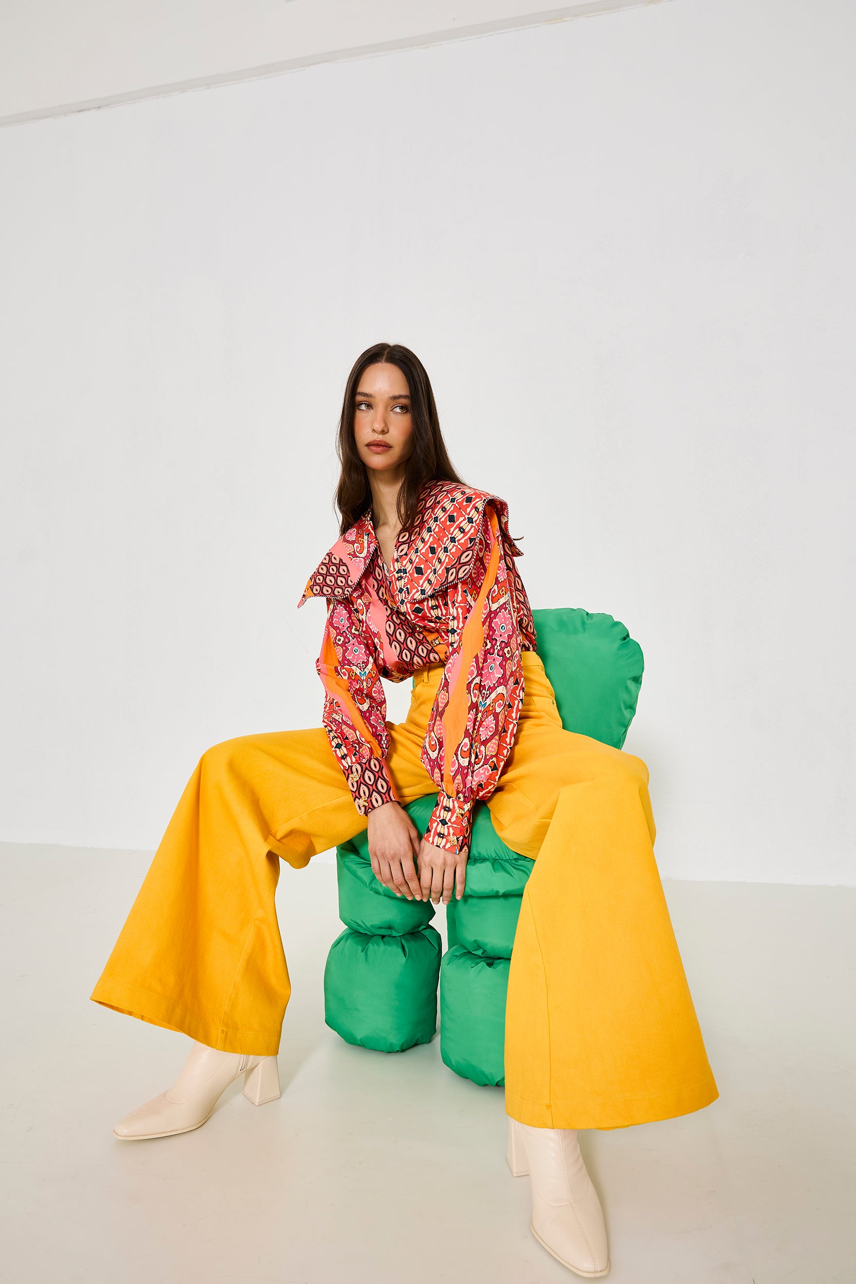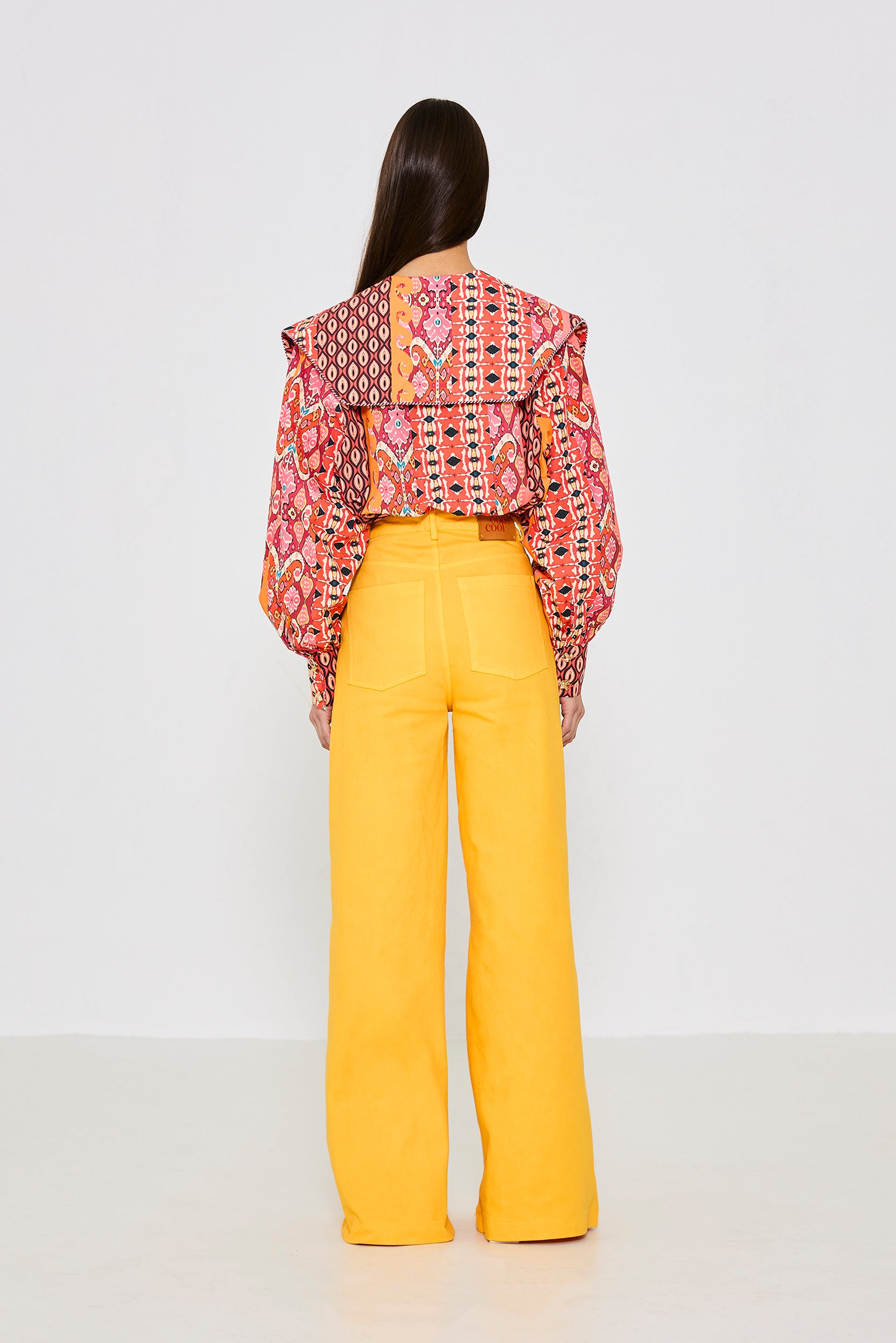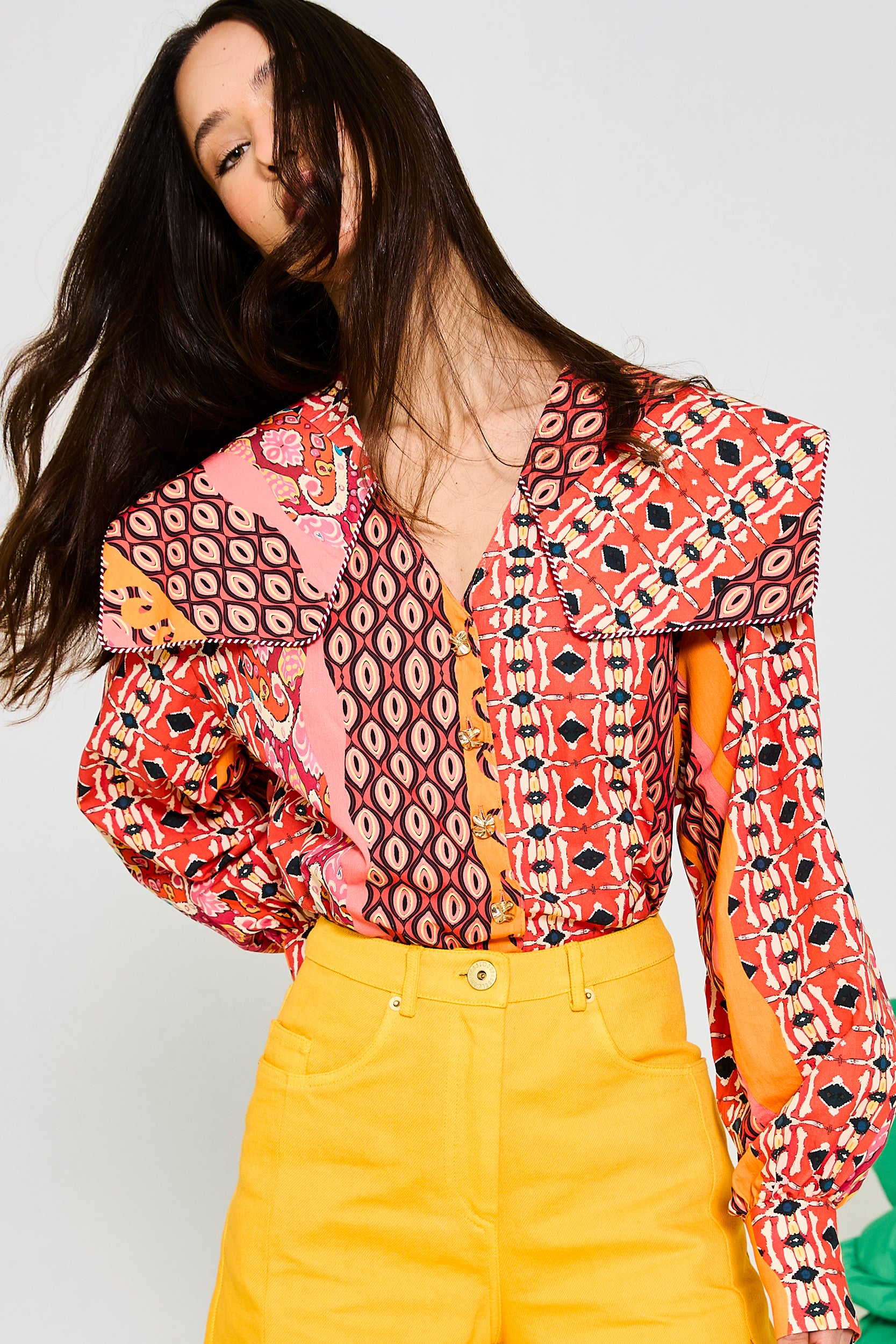 %100 Pamuk, denizci yakalı, biye detaylı, bol kesim gömlek. Modelin üzerindeki 1 bedendir.
