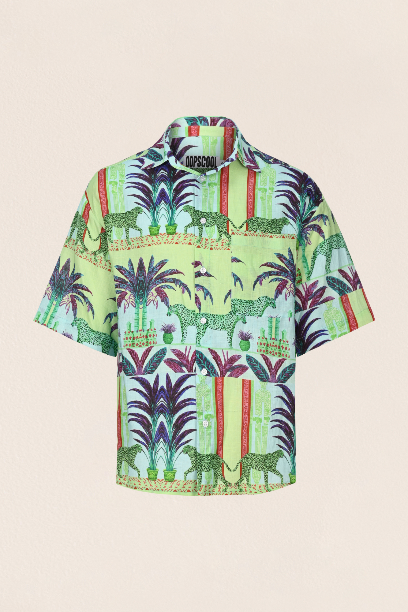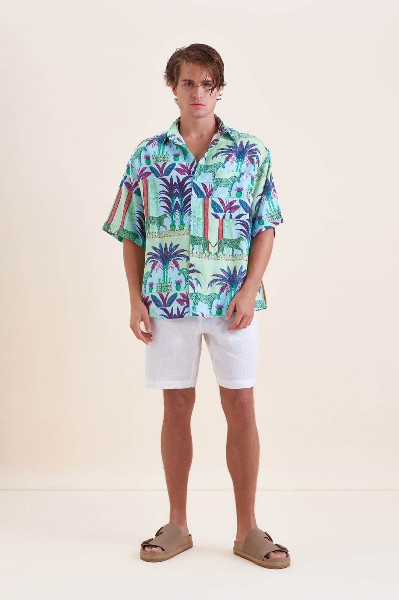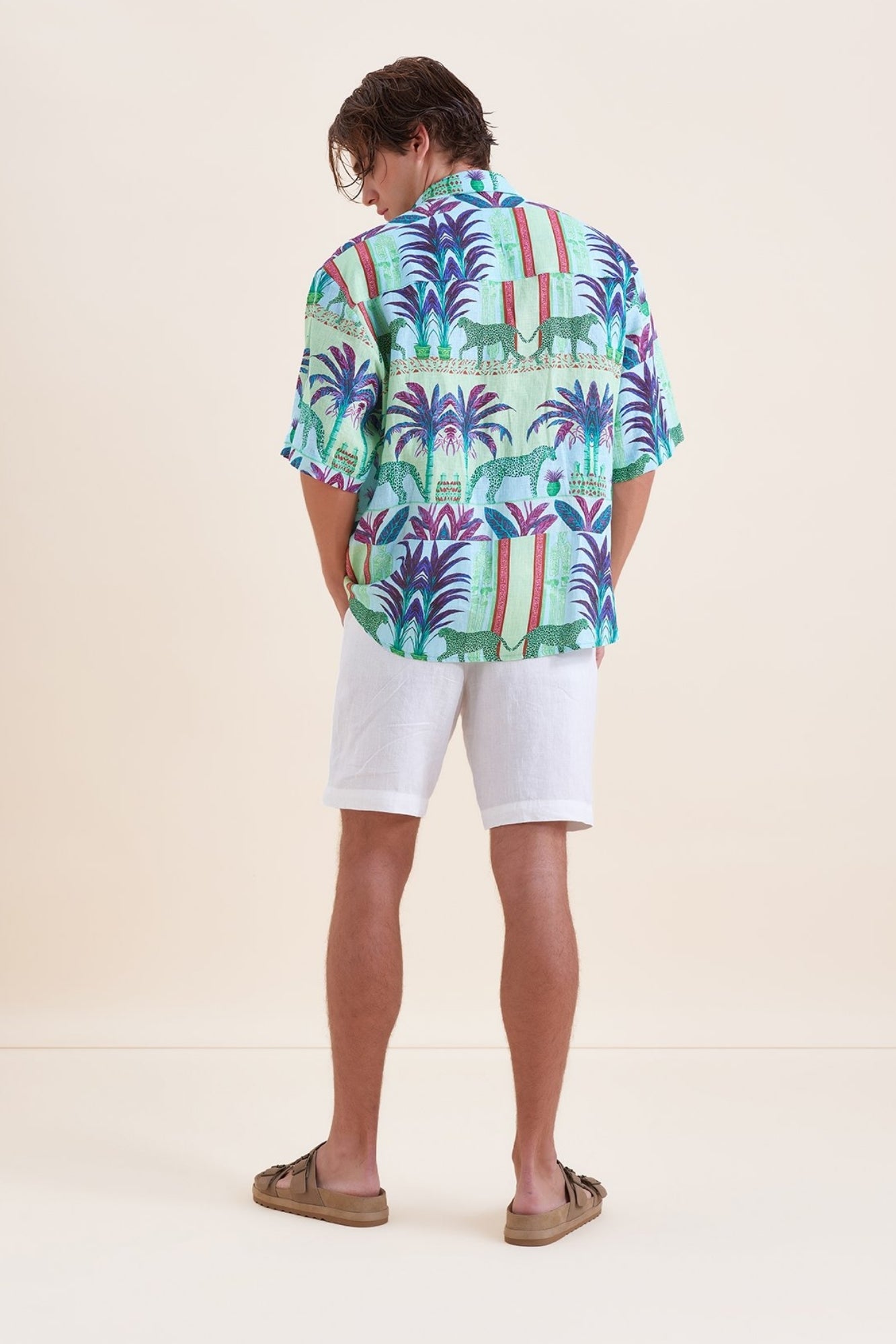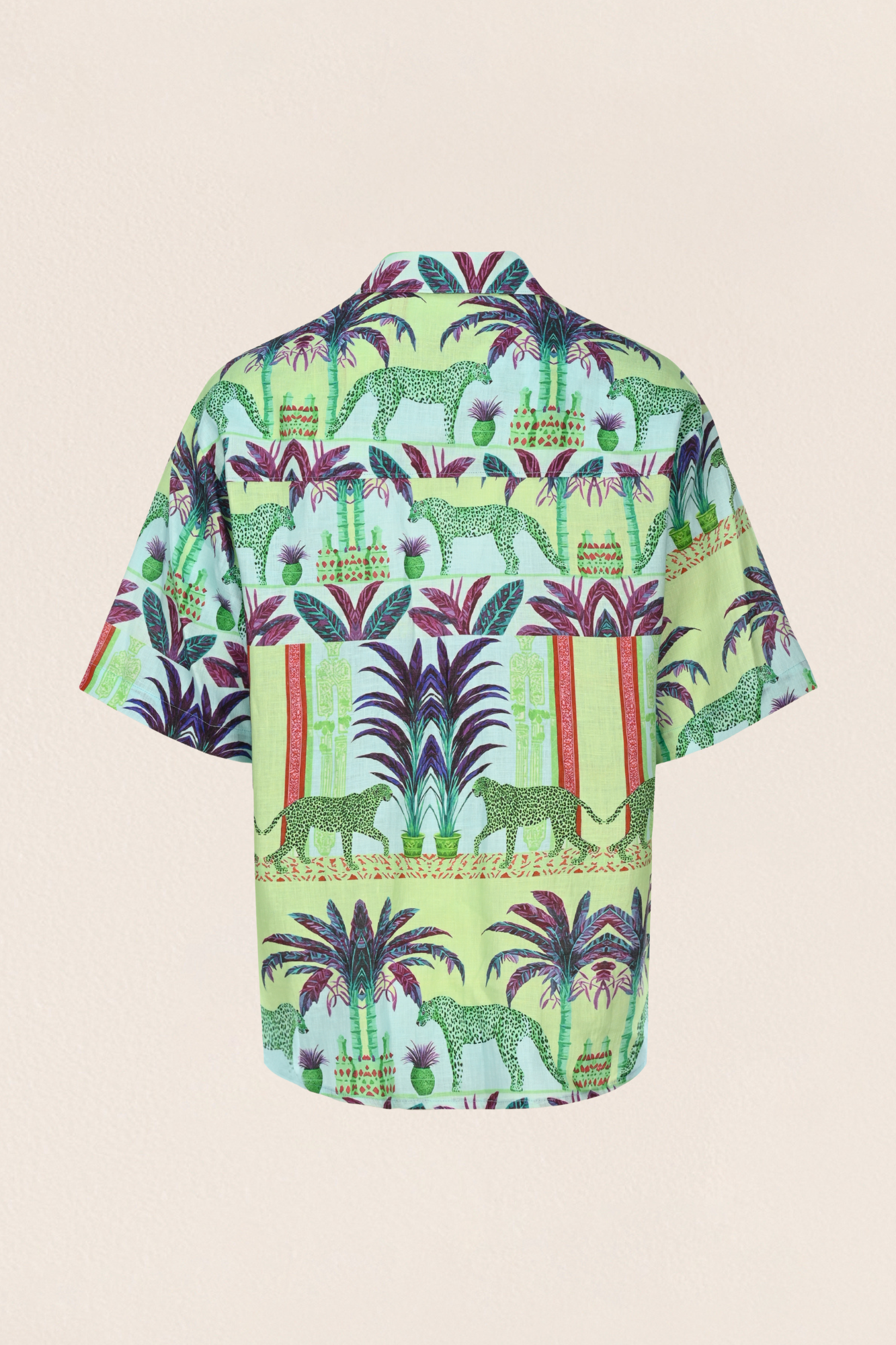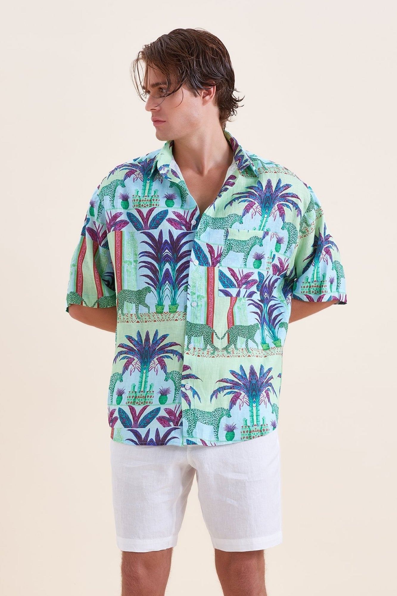 Kısa kollu, gömlek yakalı, düğme kapamalı %100 keten gömlek