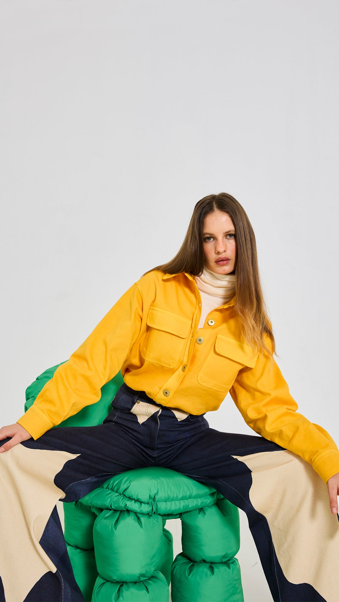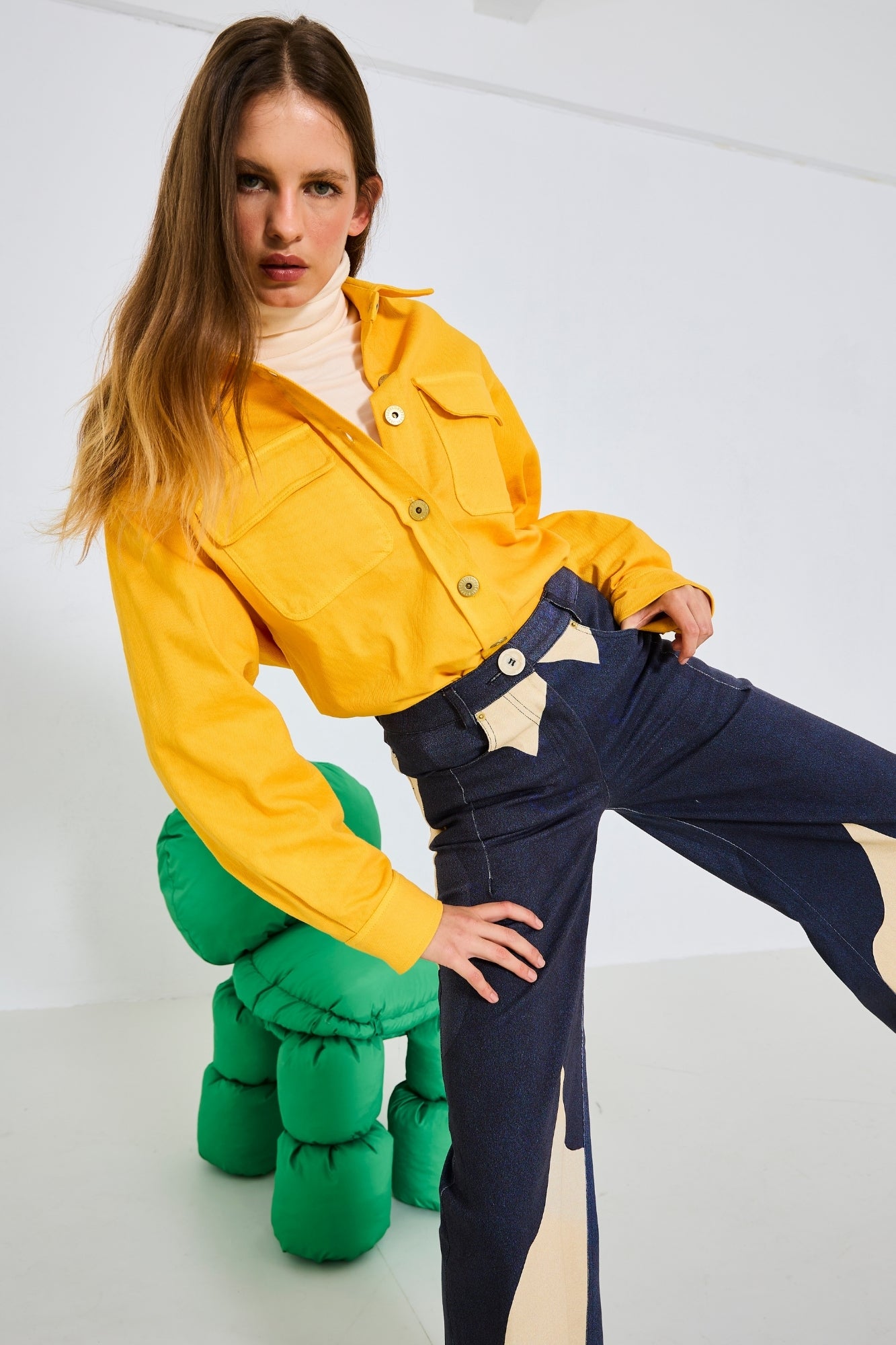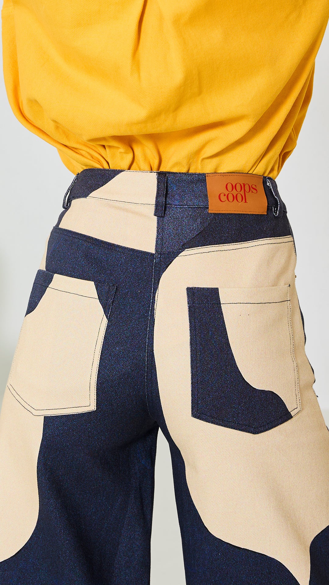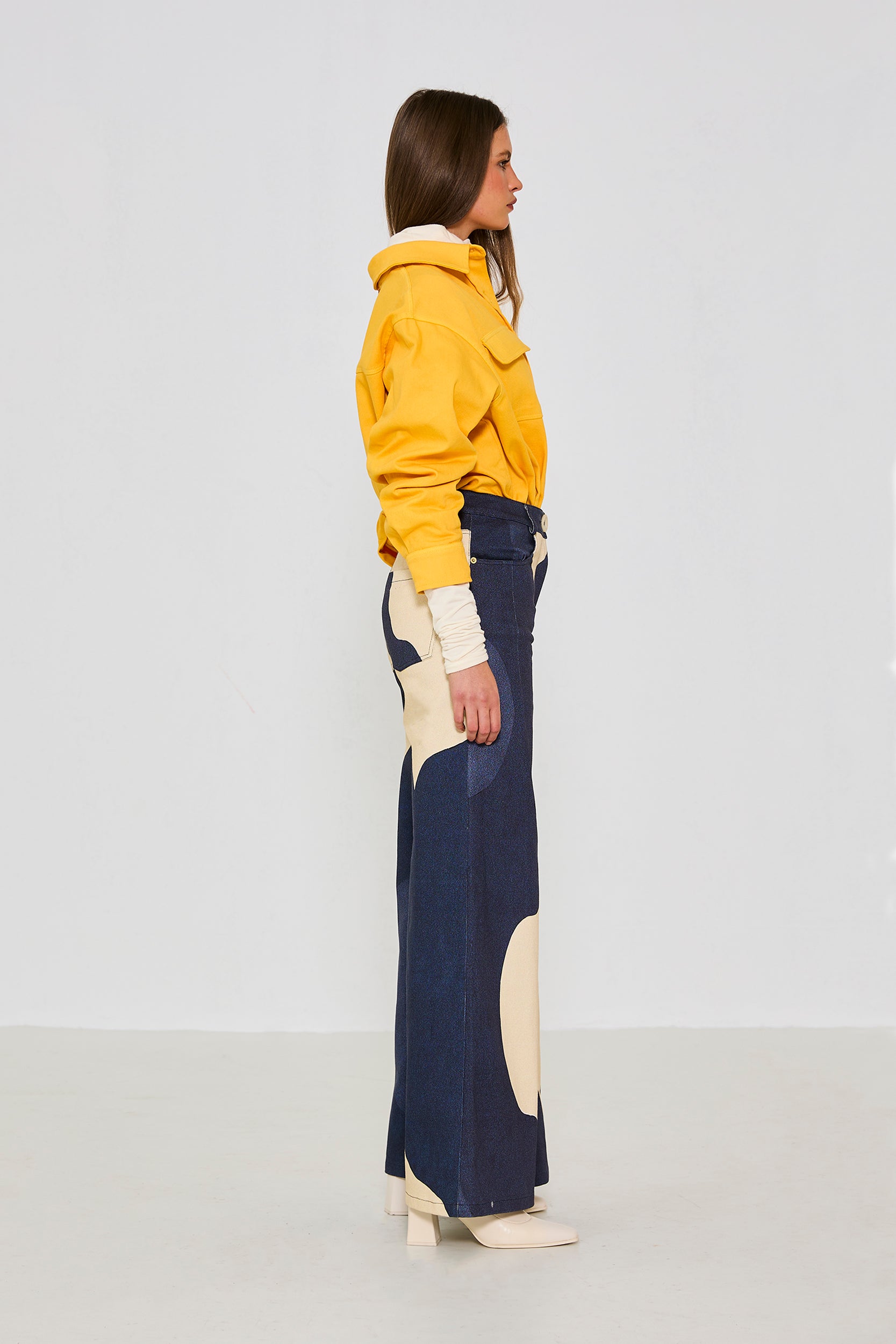 %97 Pamuk, %3 Elastan, bol paça, kalın kumaş gabardin pantolon. Modelin üzerindeki S bedendir.