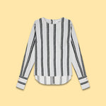 Crew neck, button down at the back, cuffed, short in the front and long in the back shırt.
