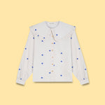 Shırt wıth a wıde, ruffled collar, button-down front, and cuffs.