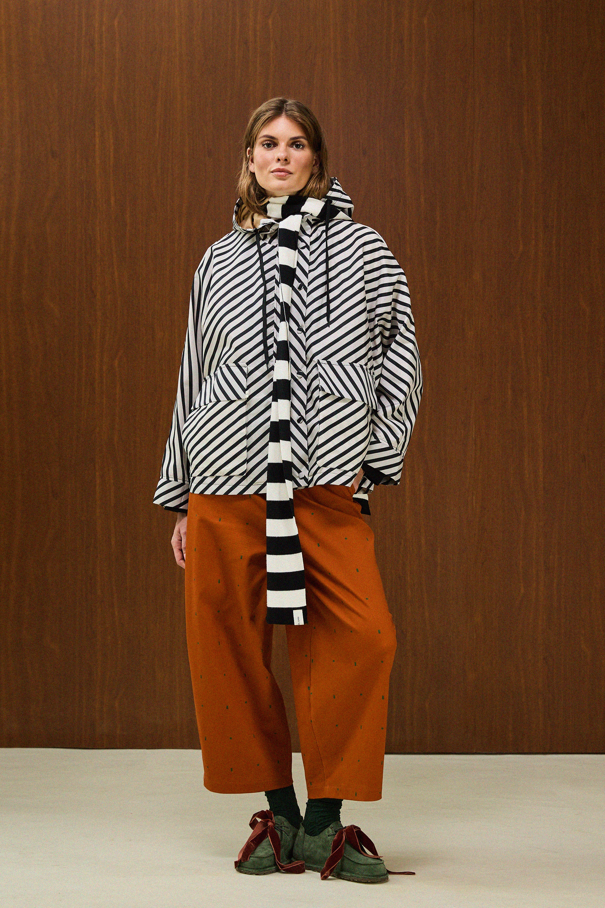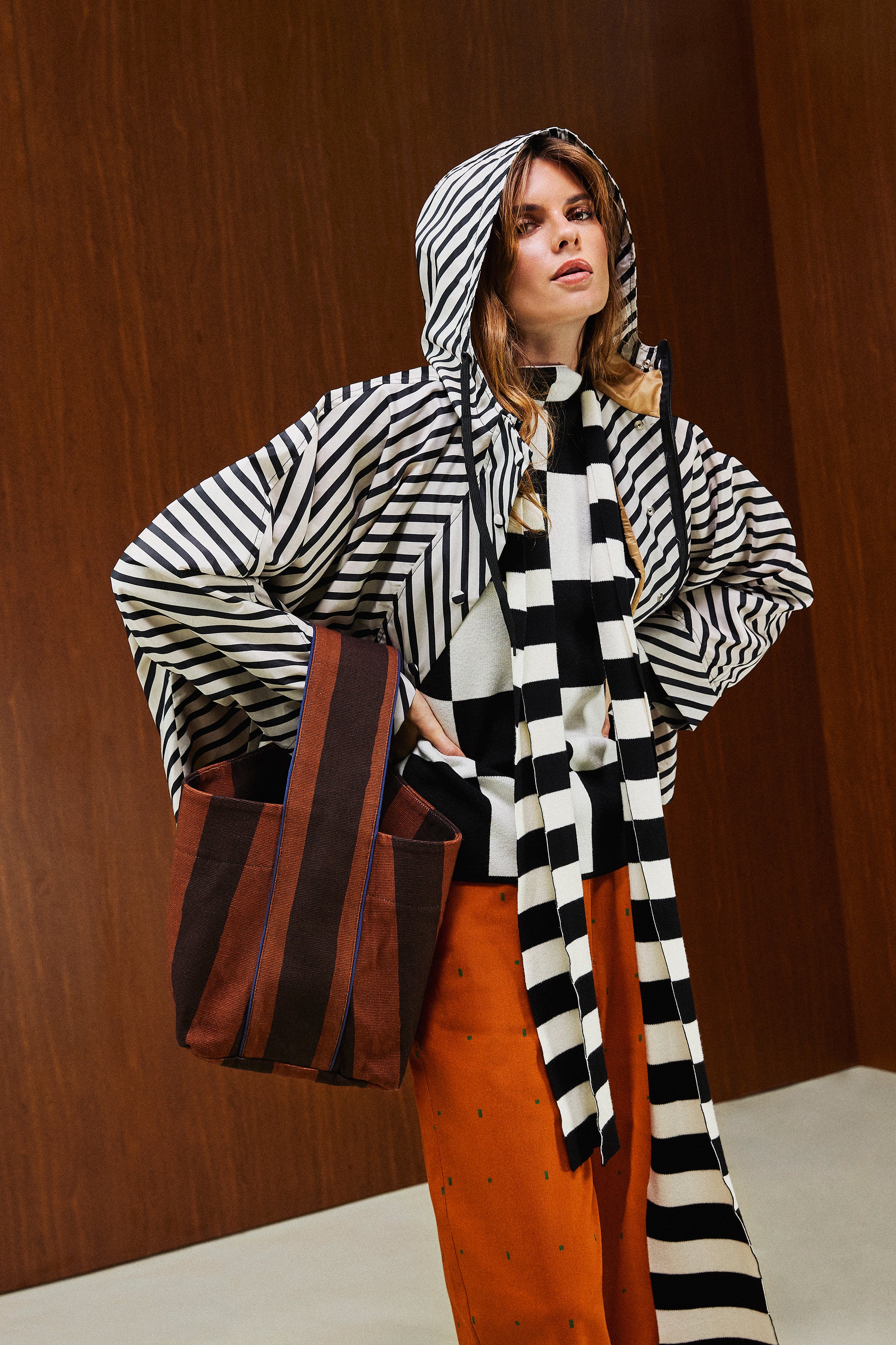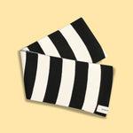 A knitted scarf featuring  stripes.Crafted in a soft, cozy texture with a straight rectangular cut and clean edges.