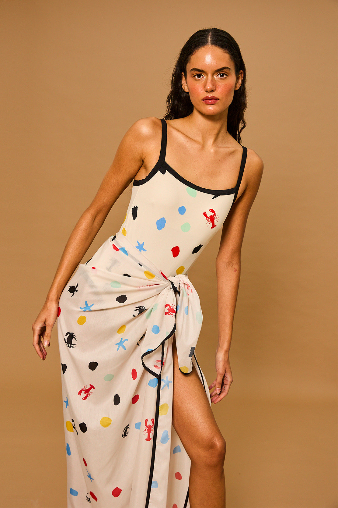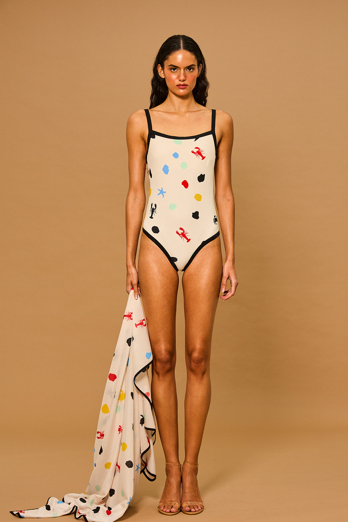 Adjustable straps, removable cups, and underwire swimsuit. Classic bottom.