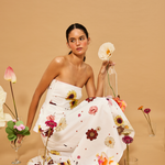 100% cotton, fitted, strapless crop top with piping details. The model is wearing a size XS.