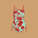Adjustable straps, removable cups, and underwire swimsuit. Classic bottom.