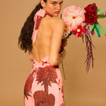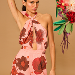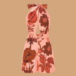 100% PES. Backless, tie neck, knot detail, front window, short jumpsuit. The model is wearing size XS.