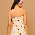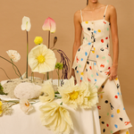 100% linen. Strapless, sleeveless, buttoned, long, vest. The model is wearing size XS.