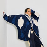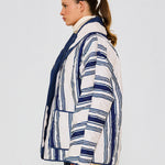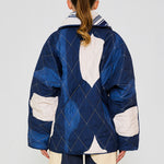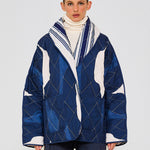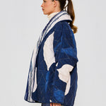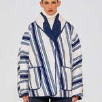 Çift taraflı giyilebilen, iki yüzünde de cepleri olan ,şal yaka ,biye detaylı puffer ceket.