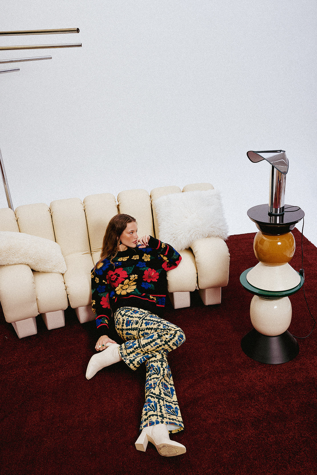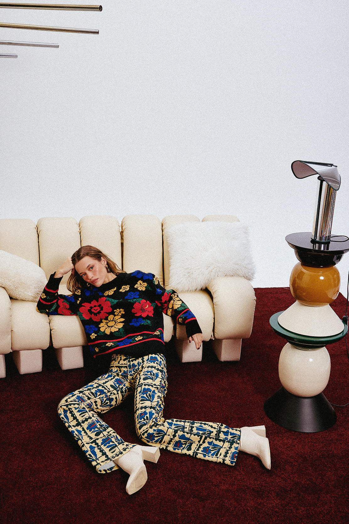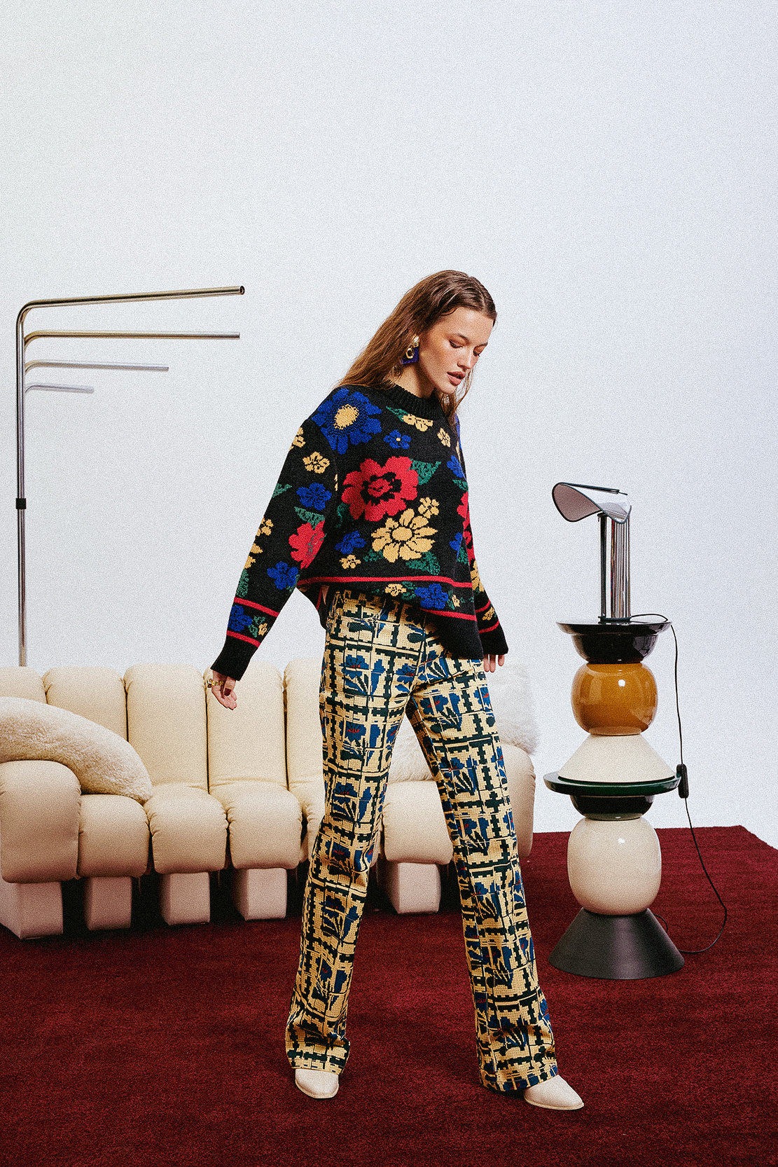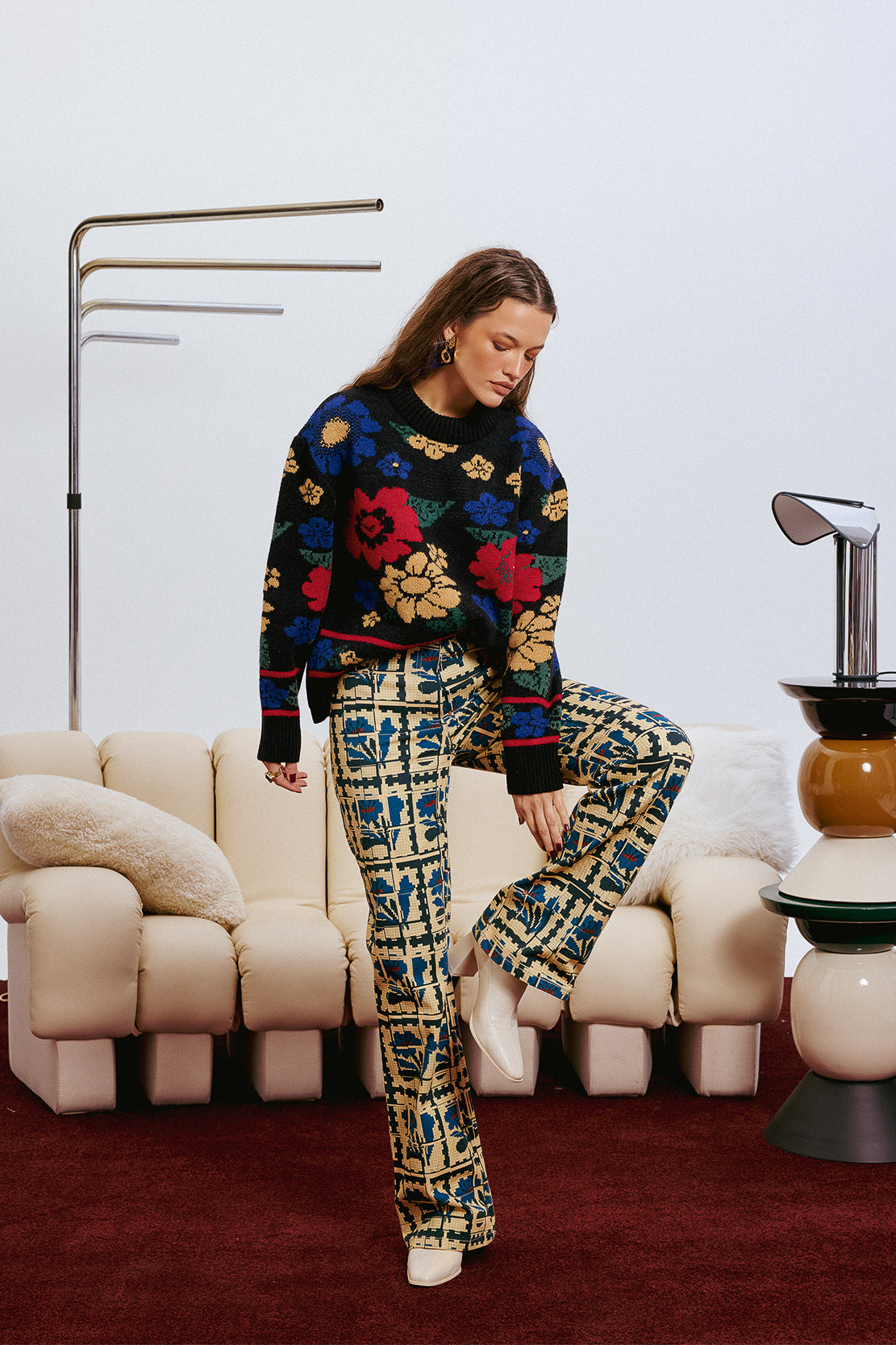 A knit sweater featuring an all-over multicolor floral jacquard pattern. Designed with a relaxed fit and finished with ribbed cuffs, hem and neckline for added comfort and durability.