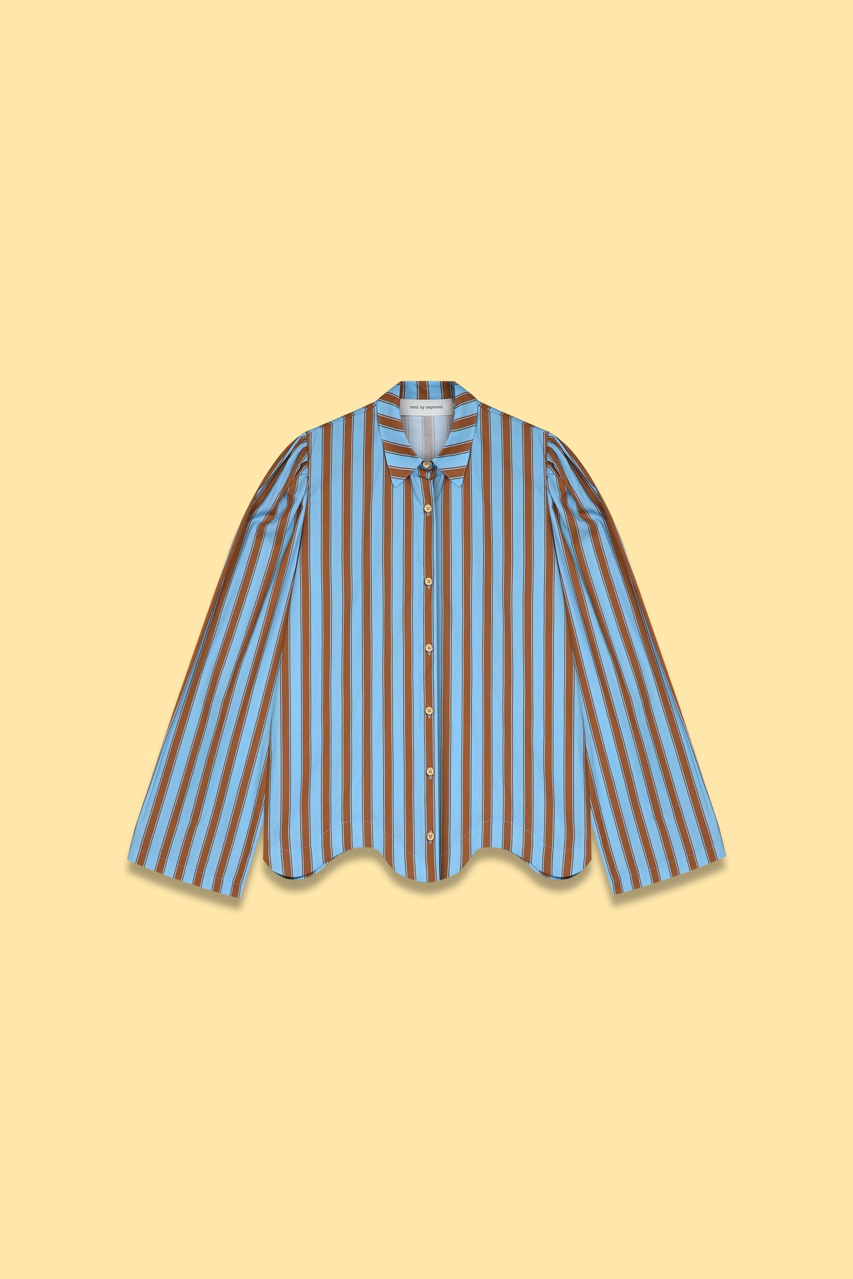 Collared, front button-down, wıde sleeves, gathered, hem detaıed shırt.