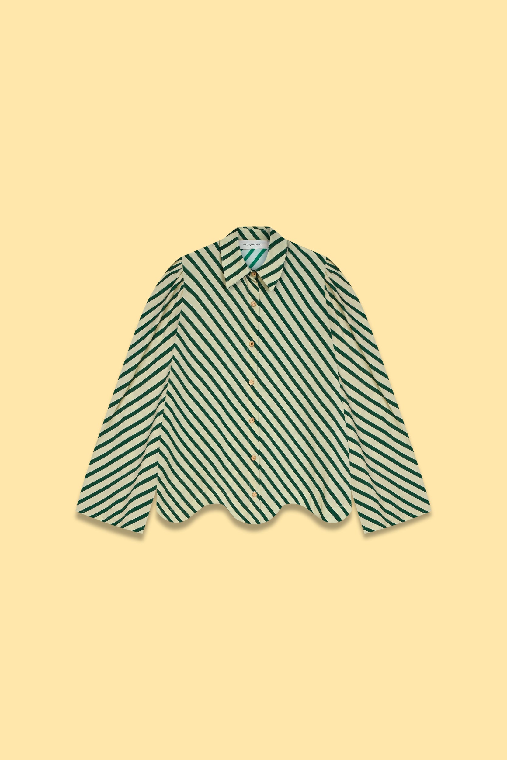 Collared, front button-down, wıde sleeves, gathered, hem detaıed shırt.