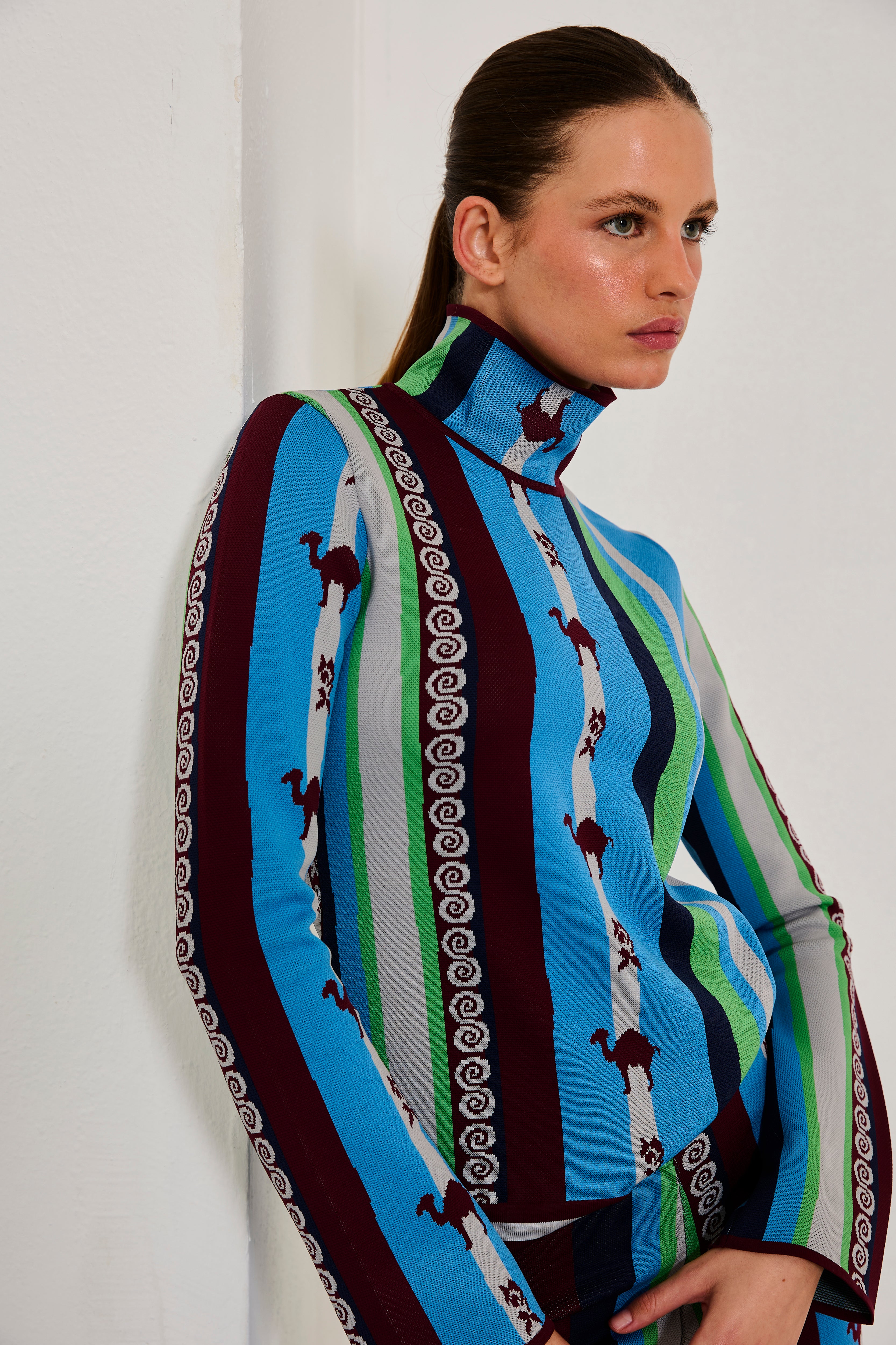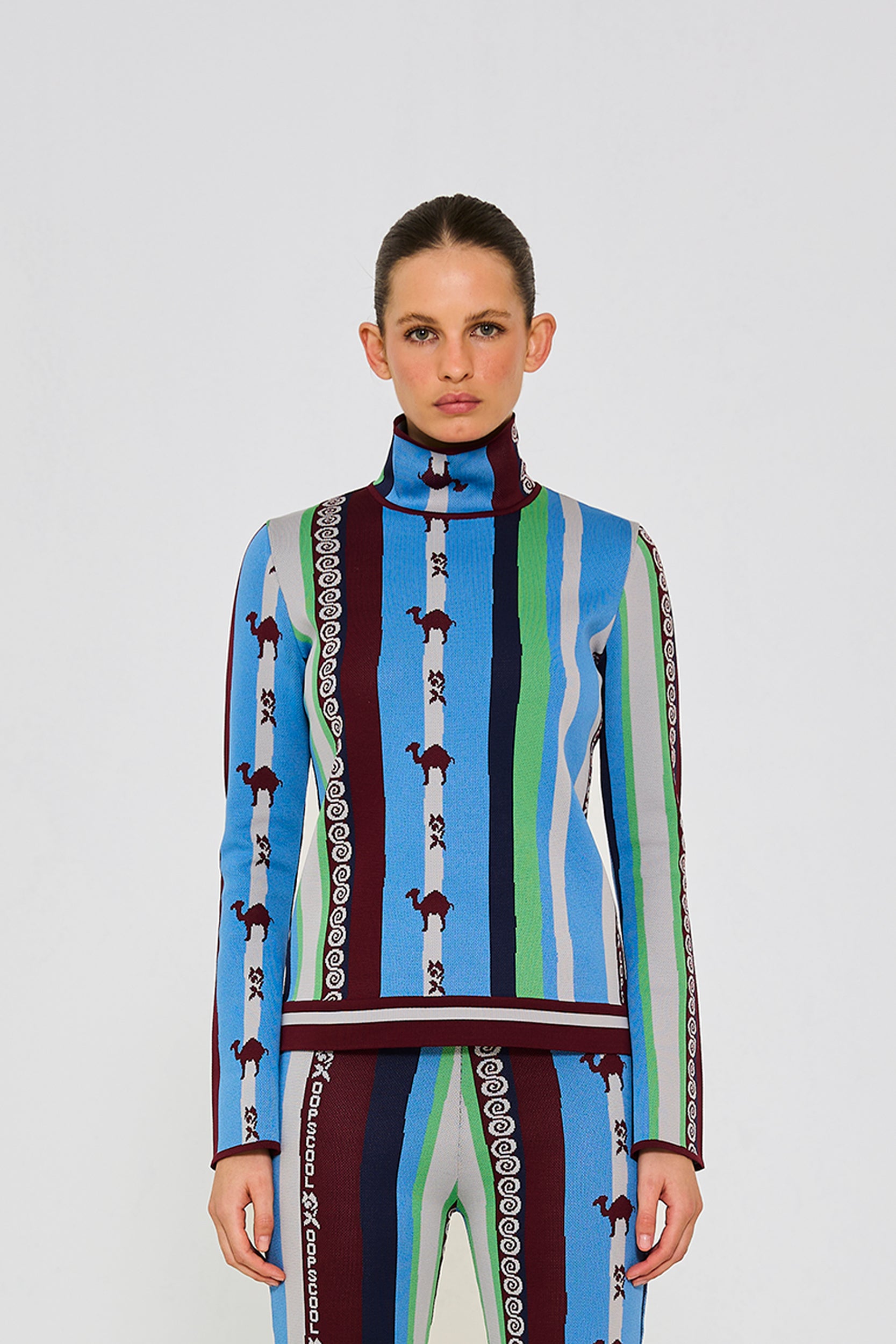 %100 Pes, balıkçı yaka, uzun kollu, triko top. Modelin üzerindeki S bedendir.