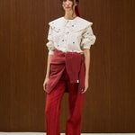 Hıgh waısted, wıde long, trousers wıth zıp and wooden buttons.