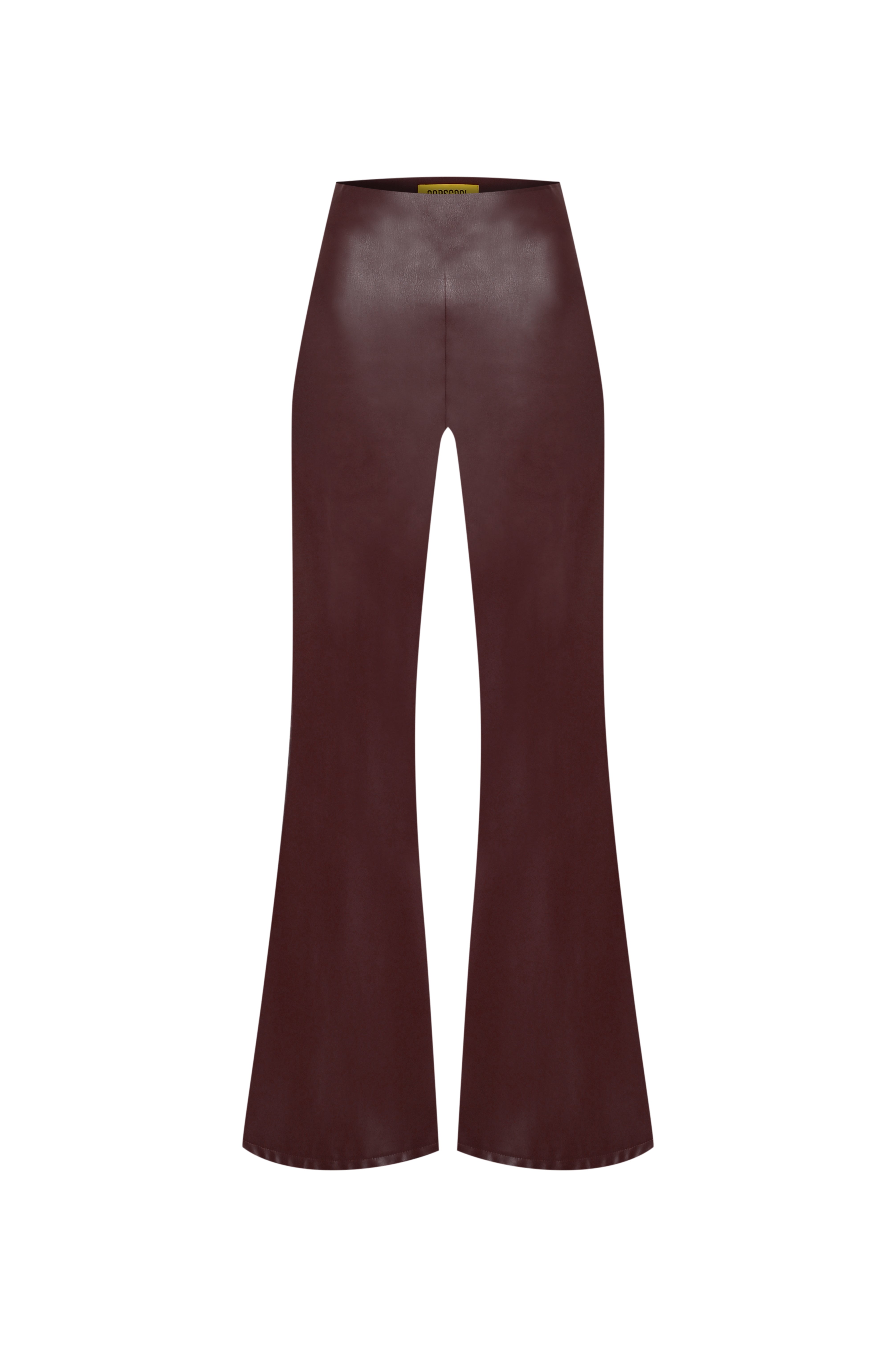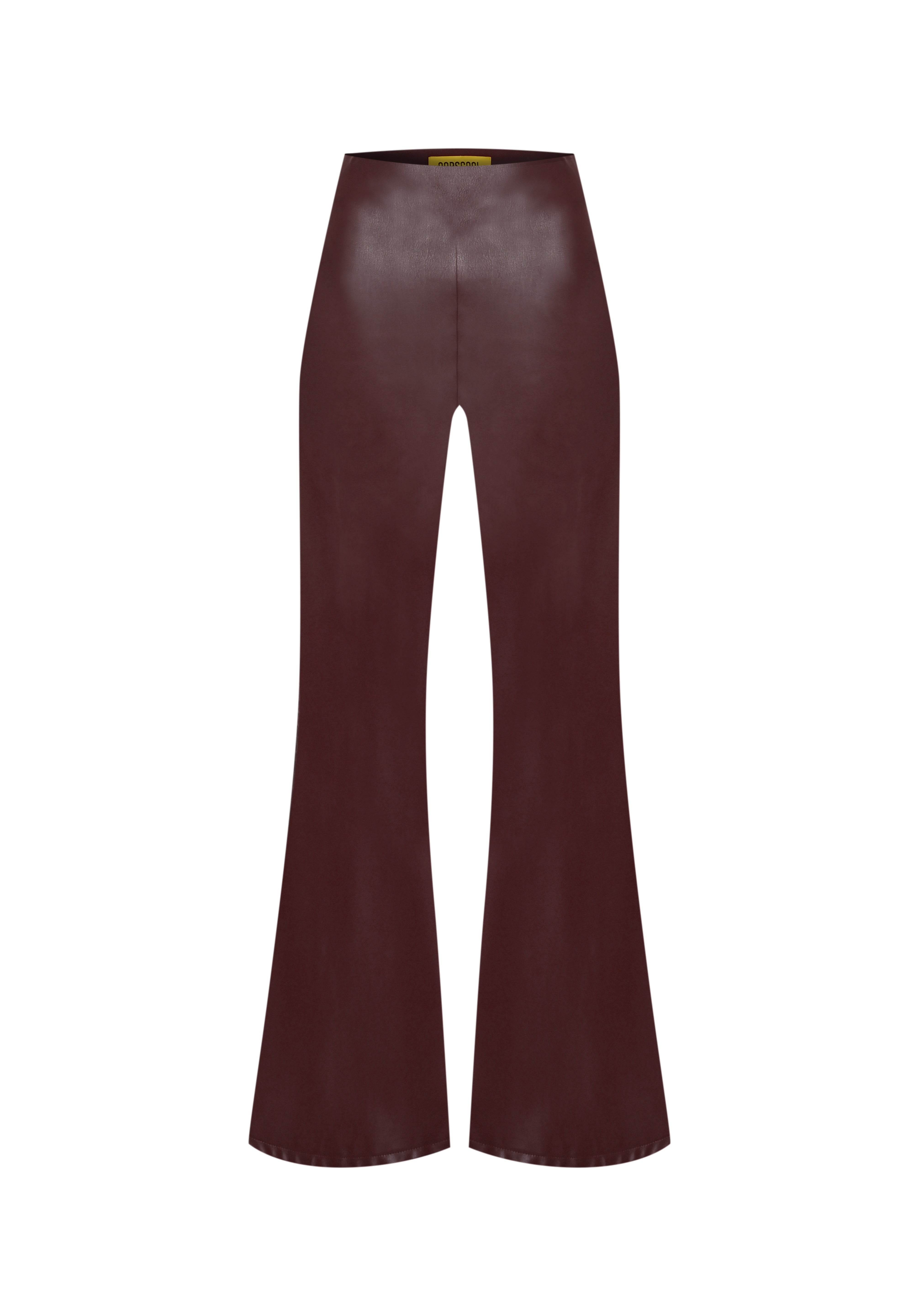 Pantalones de efecto cuero con cintura alta y corte acampanado que incorporan una cremallera lateral para un ajuste suave y estilizado.