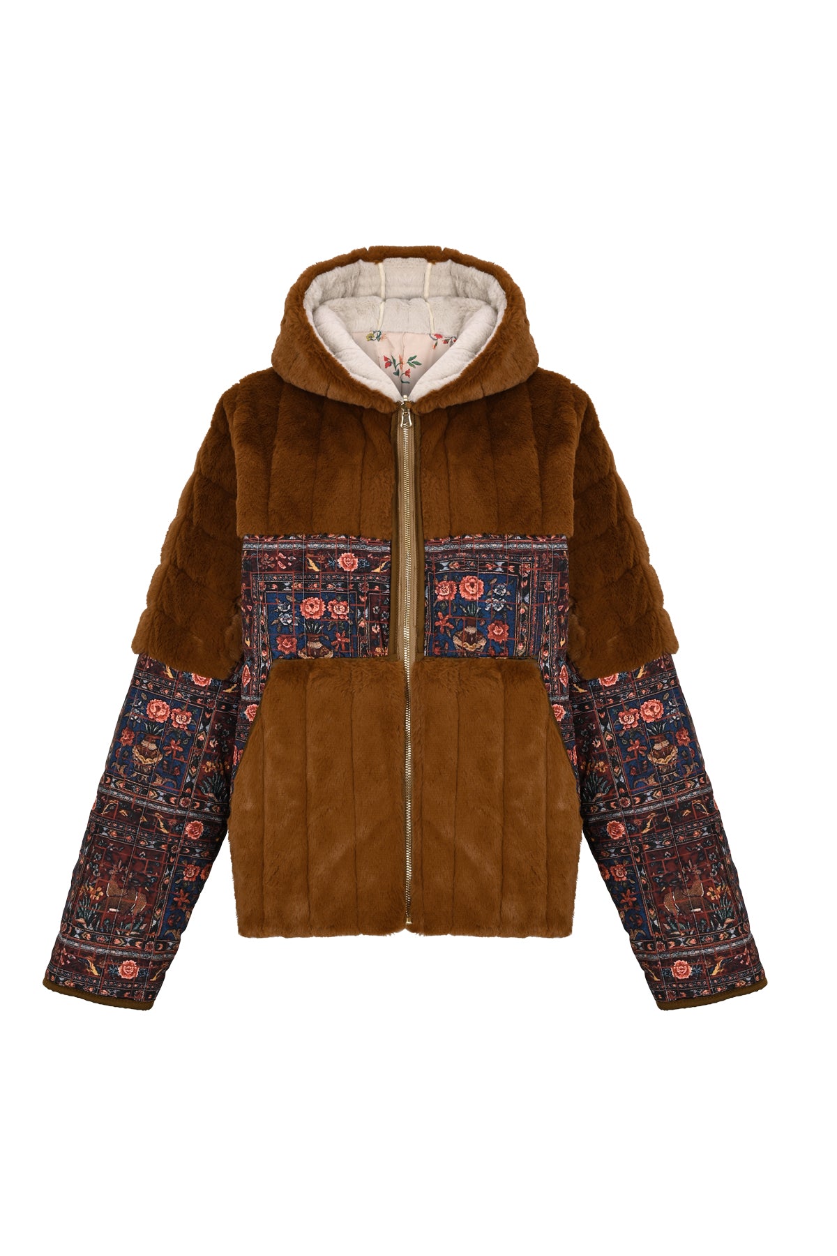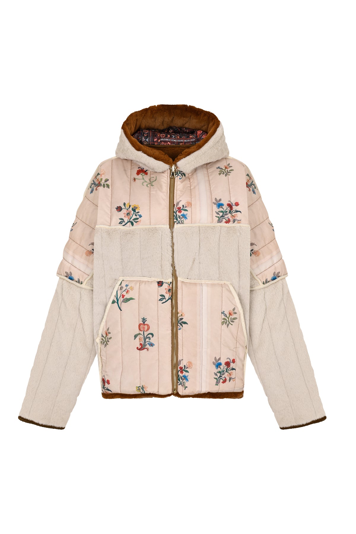 Chaqueta acolchada reversible con capucha, confeccionada en tejido interior y exterior de piel sintética y acolchado estampado, con cierre de cremallera frontal. Diseñada con un corte oversize y bolsillos funcionales, ofrece calidez, comodidad y dos opciones de estilo distintas.