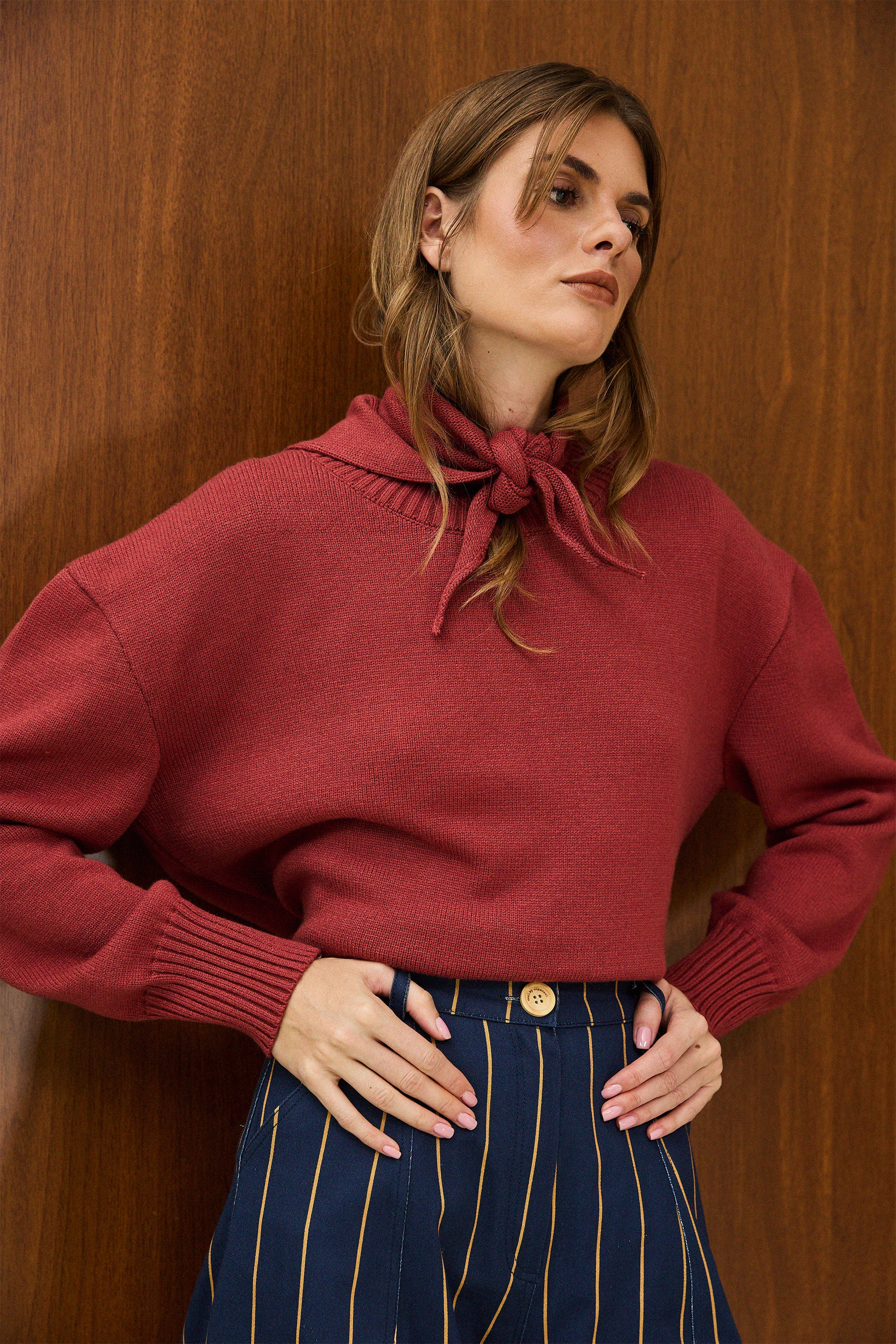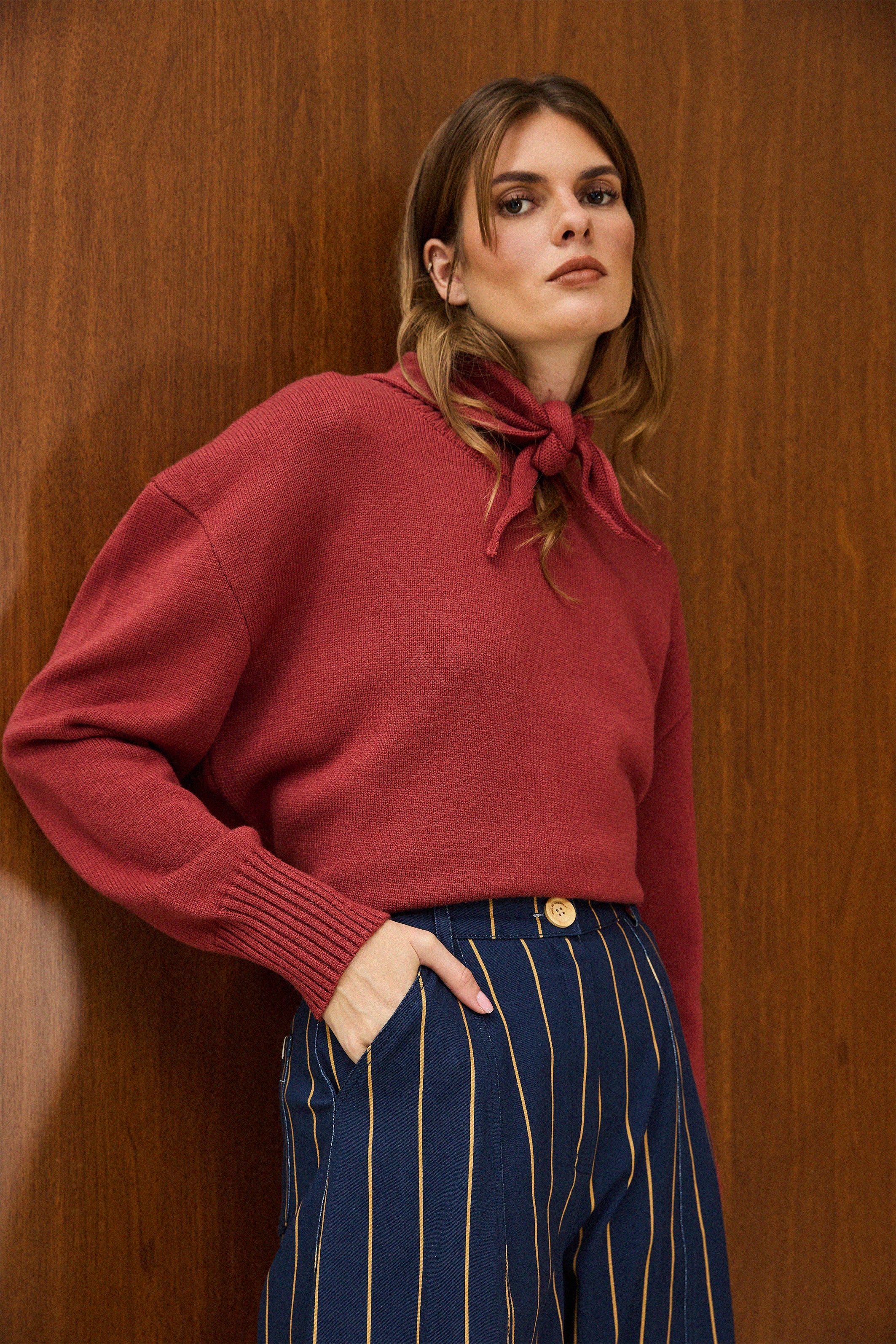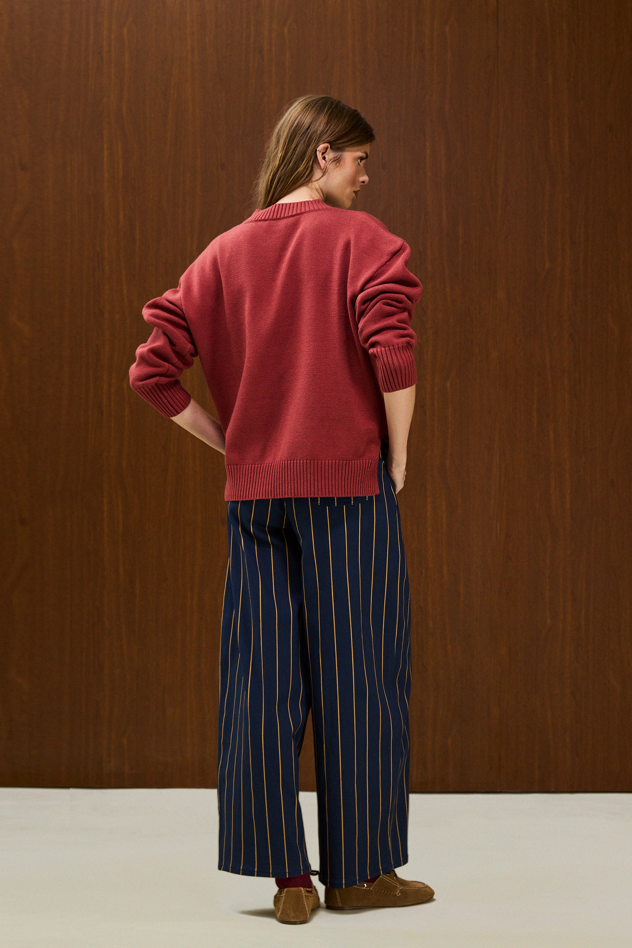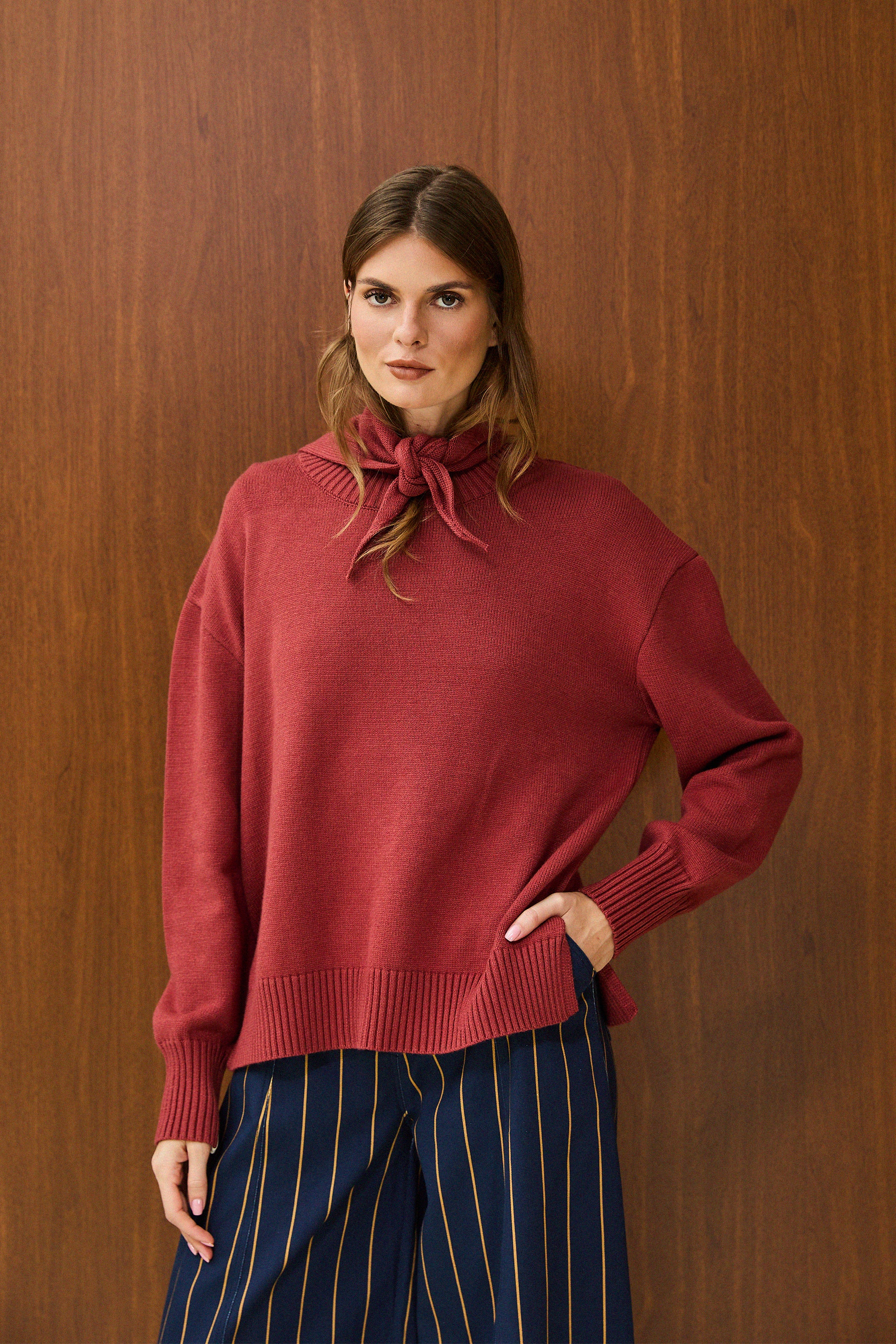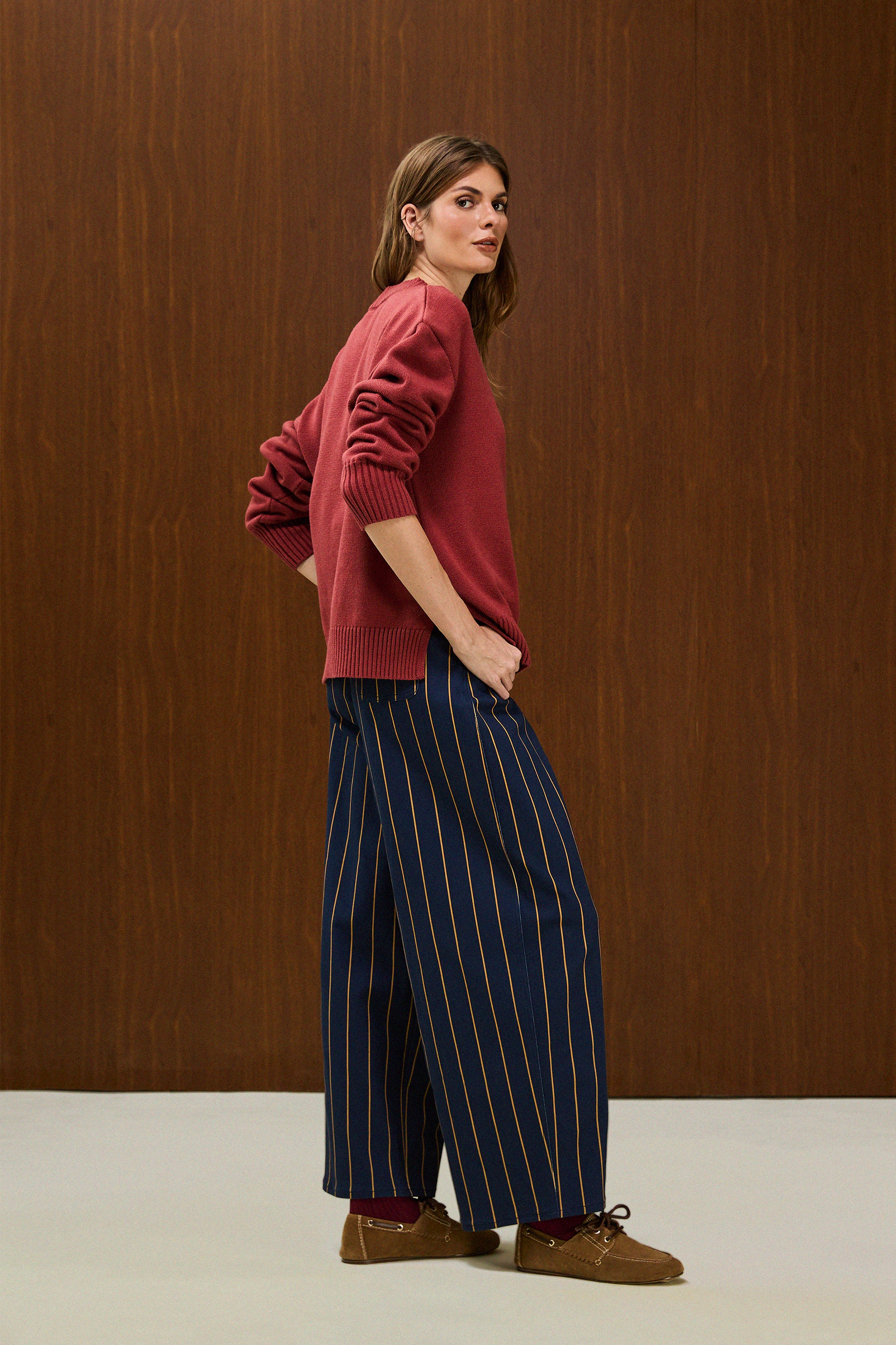 Crew neck, long sleeves, sıde small slıt knıt sweater.